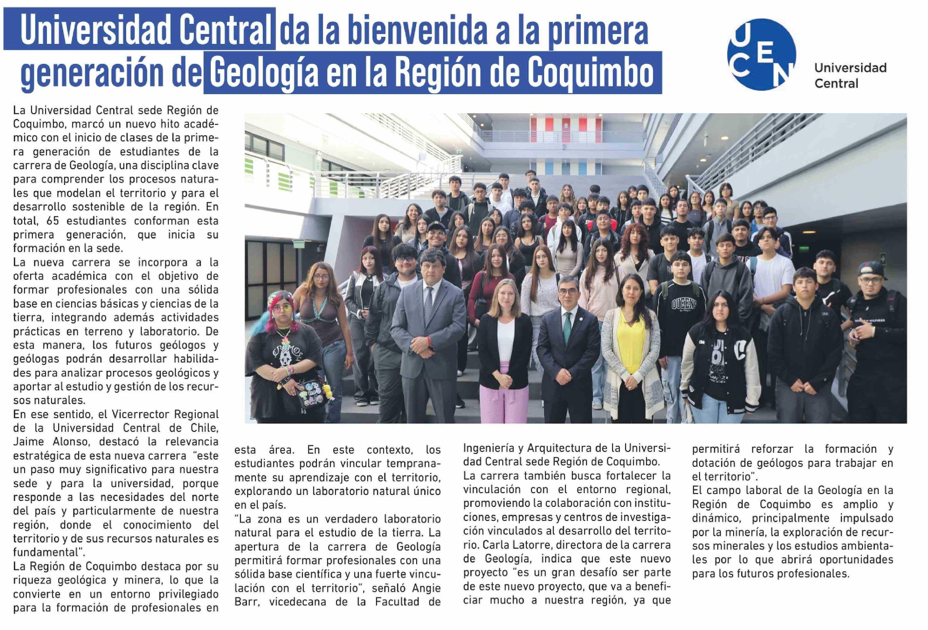 Título: Universidad Central da la bienvenida a la primera generación de Geología en la Región de Coquimbo