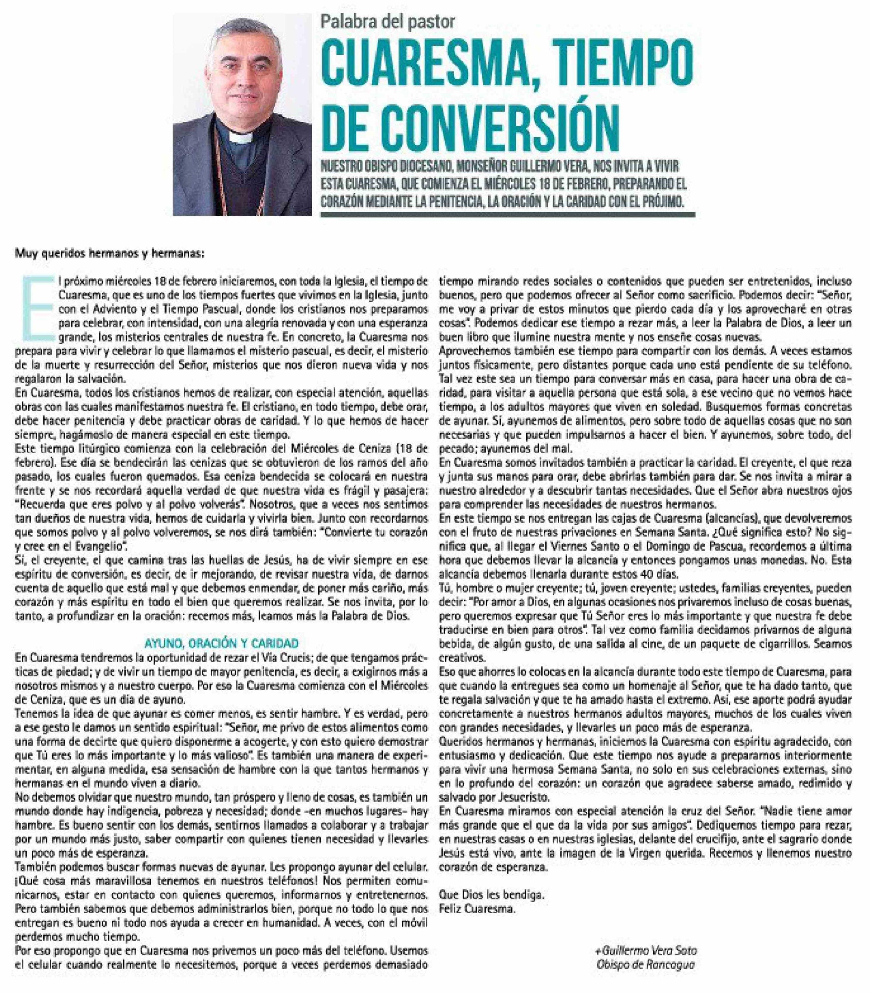 | Título: | Columnas de Opinión: Cuaresma, que es uno de los tiempos fuertes que vivimos en la Iglesia, junto buenos, pero que podemos ofrecer al Señor como sacrificio. Podemos decir: "Señor, con el Adviento y el Tiempo Pascual, donde los cristianos nos preparamos para celebrar, con intensidad, con una alegria |