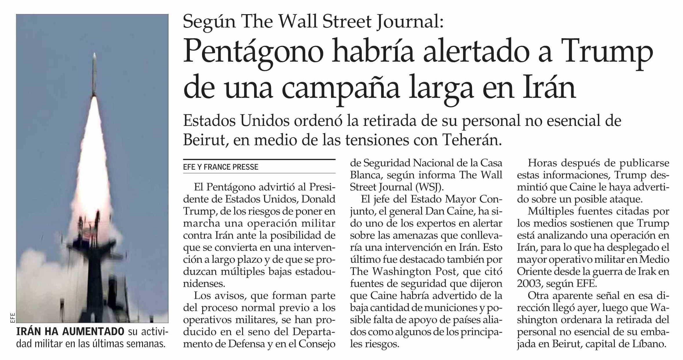 Pentágono habría alertado a Trump de una campaña larga en Irán