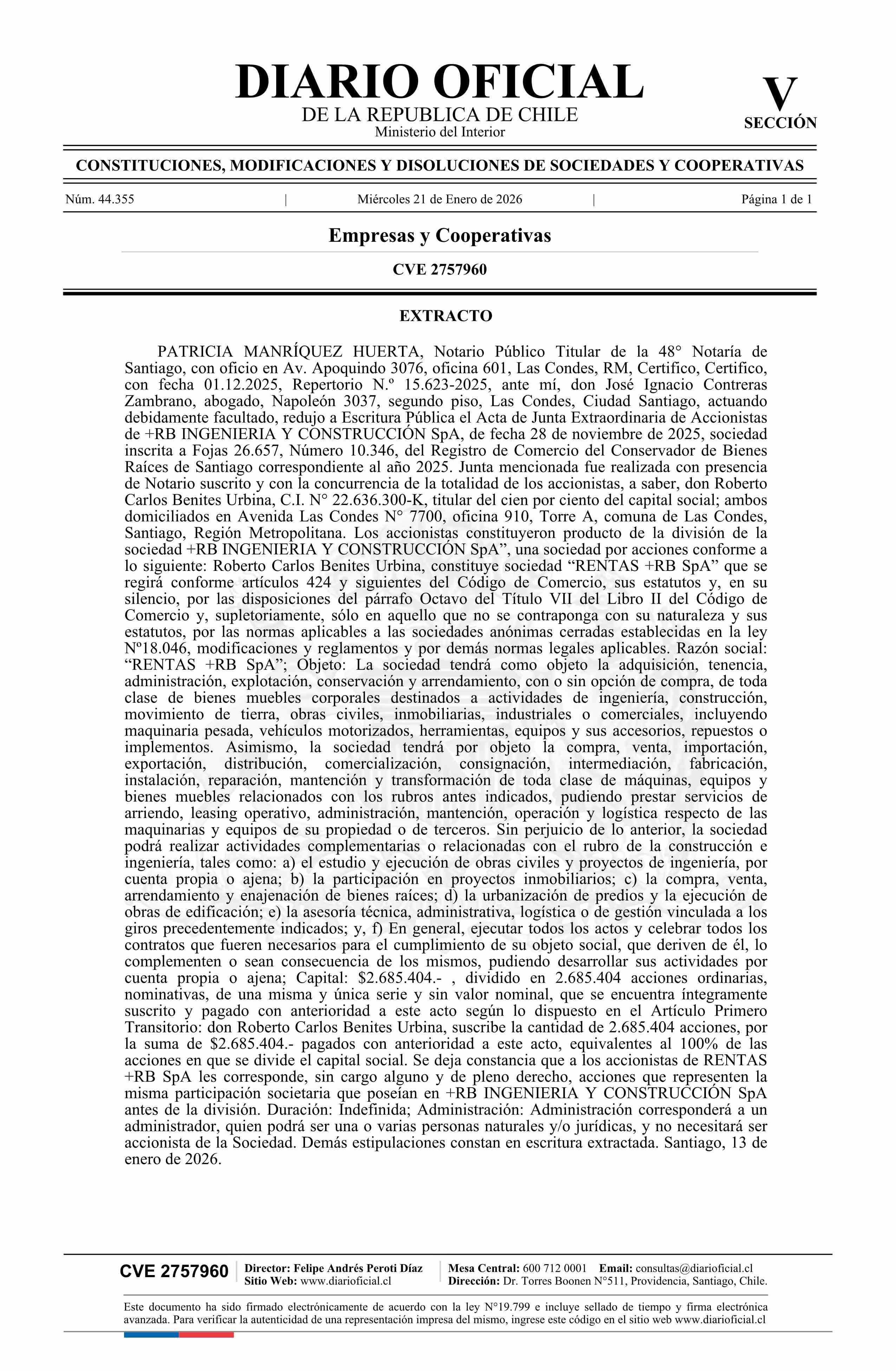 Diario Oficial Edición Electrónica (Diario Oficial de Chile - 5 Empresas Y Cooper)