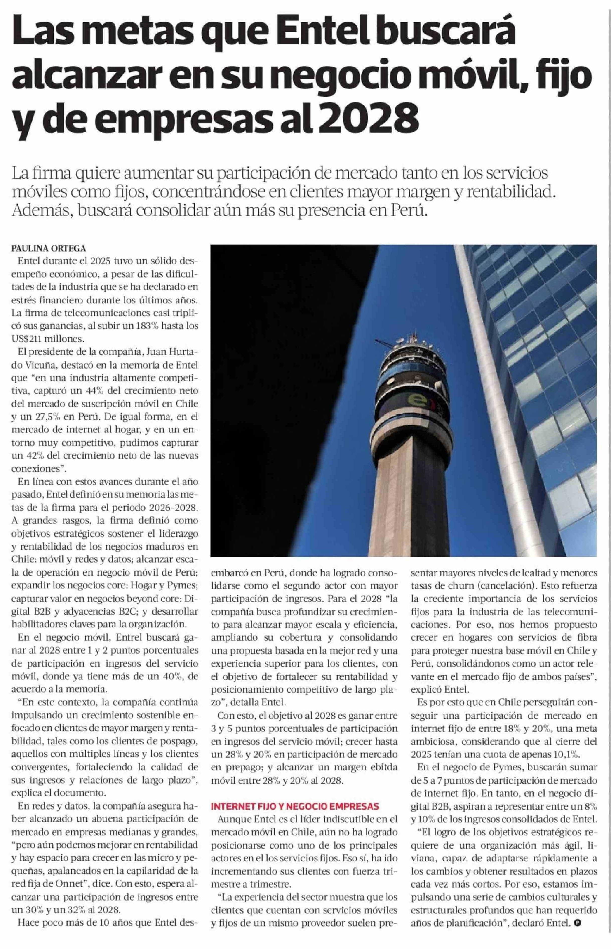 Las metas que Entel buscará alcanzar en su negocio móvil, fijo y de empresas al 2028