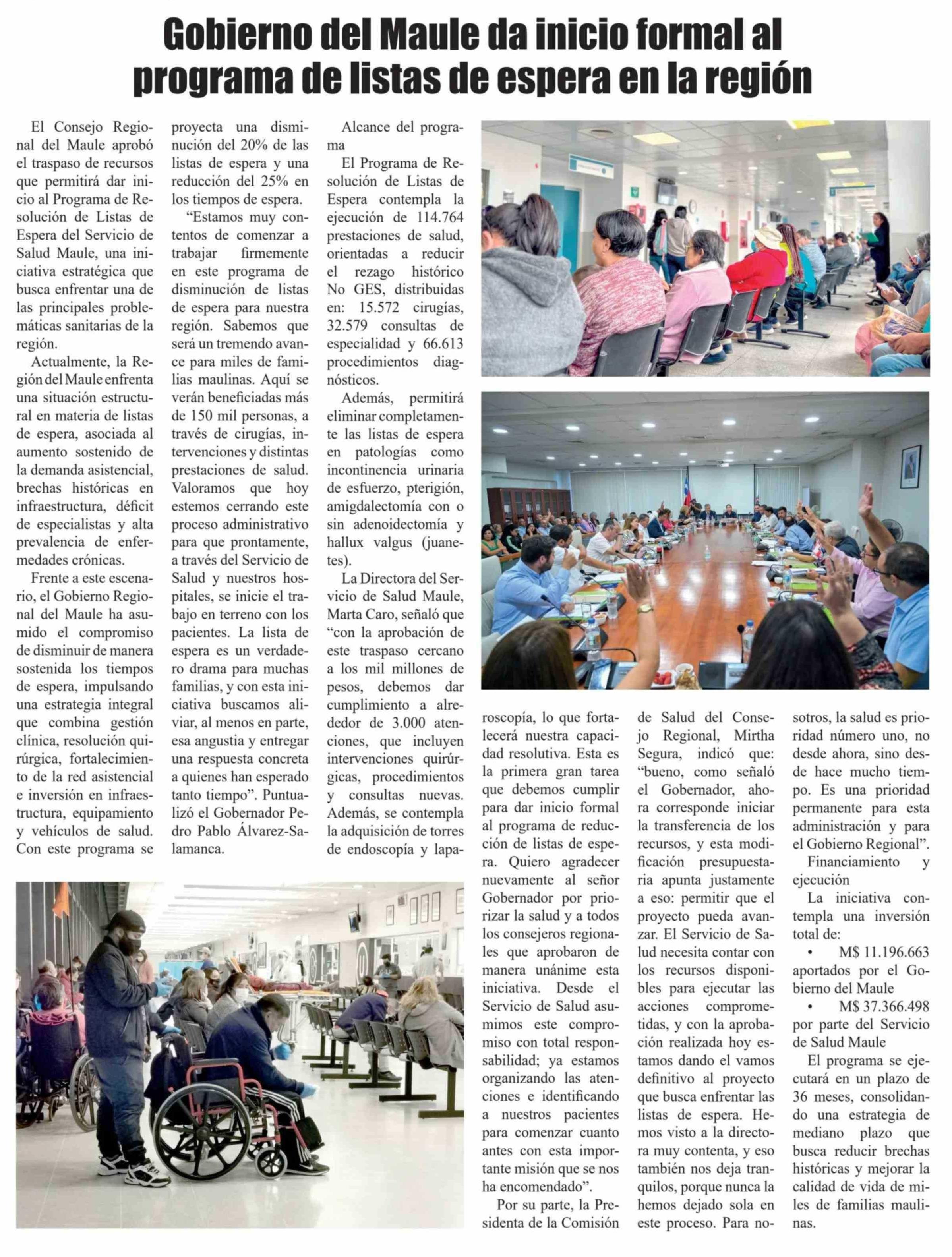 Gobierno del Maule da inicio formal al programa de listas de espera en la región