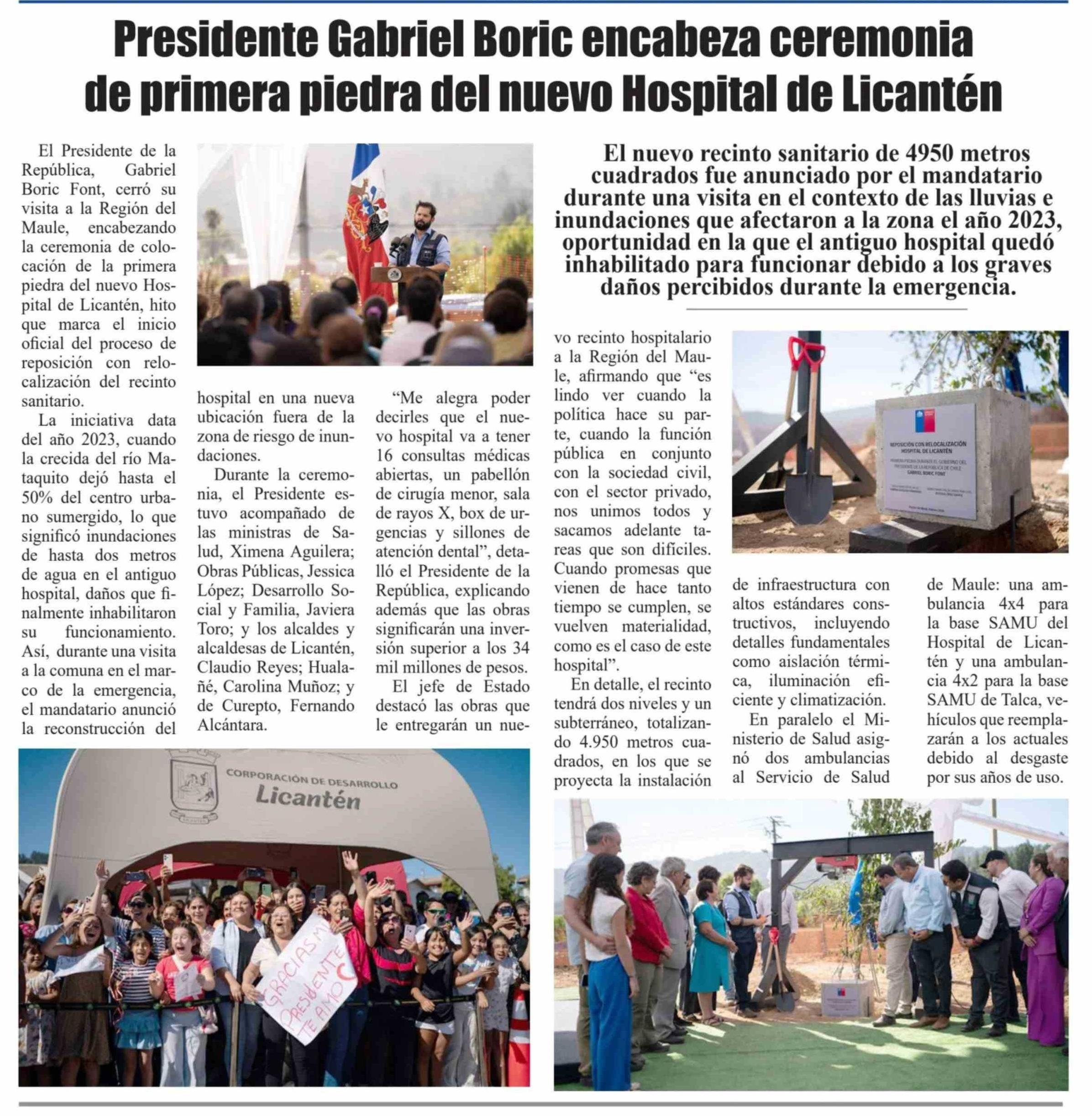 Presidente Gabriel Boric encabeza ceremonia de primera piedra del nuevo Hospital de Licantén