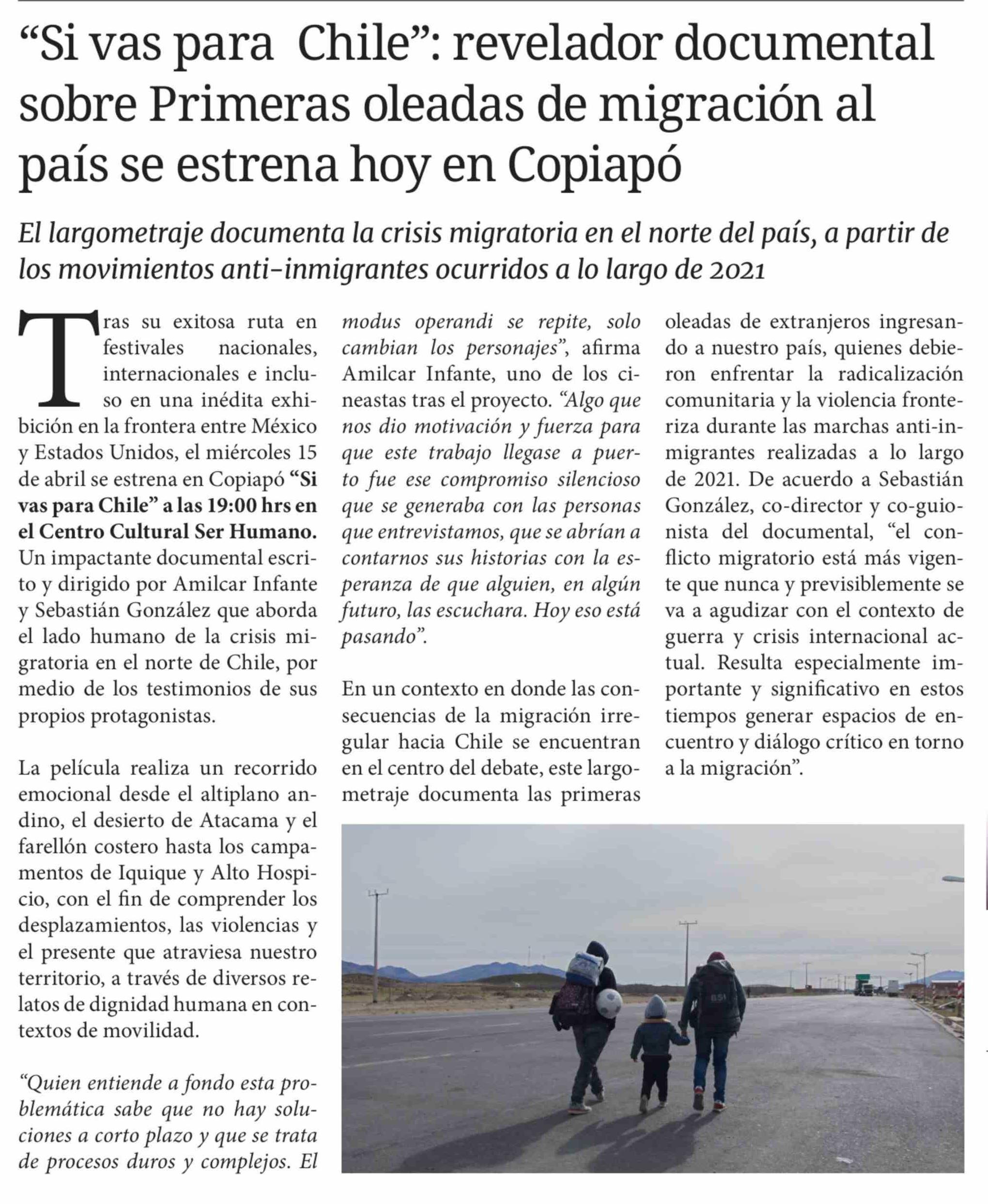 "Si vas para Chile": revelador documental sobre Primeras oleadas de migración al país se estrena hoy en Copiapó