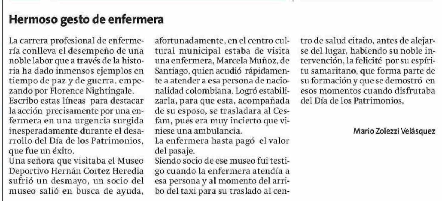 Cartas: Hermoso gesto de enfermera