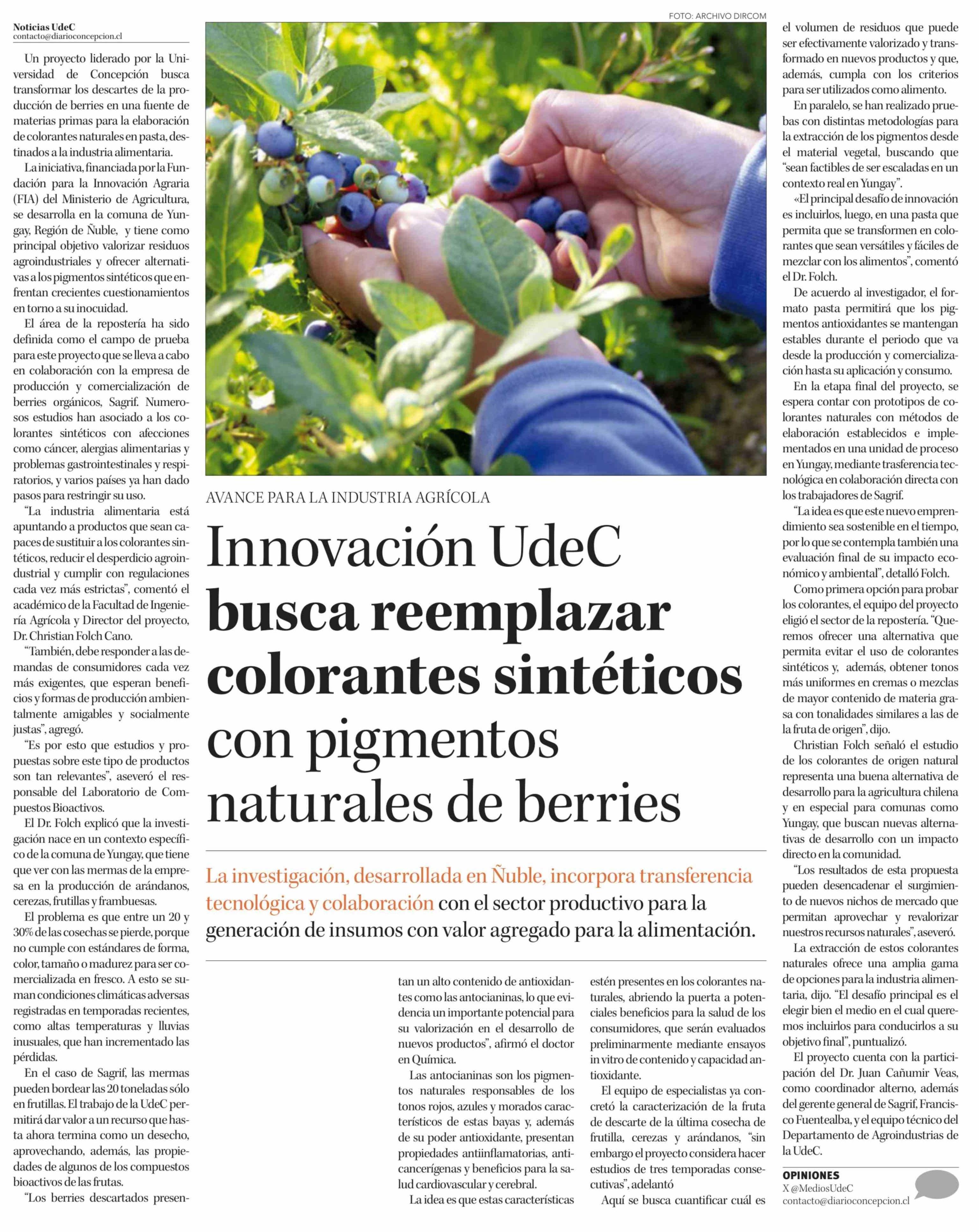 Innovación UdeC busca reemplazar colorantes sintéticos con pigmentos naturales de berries