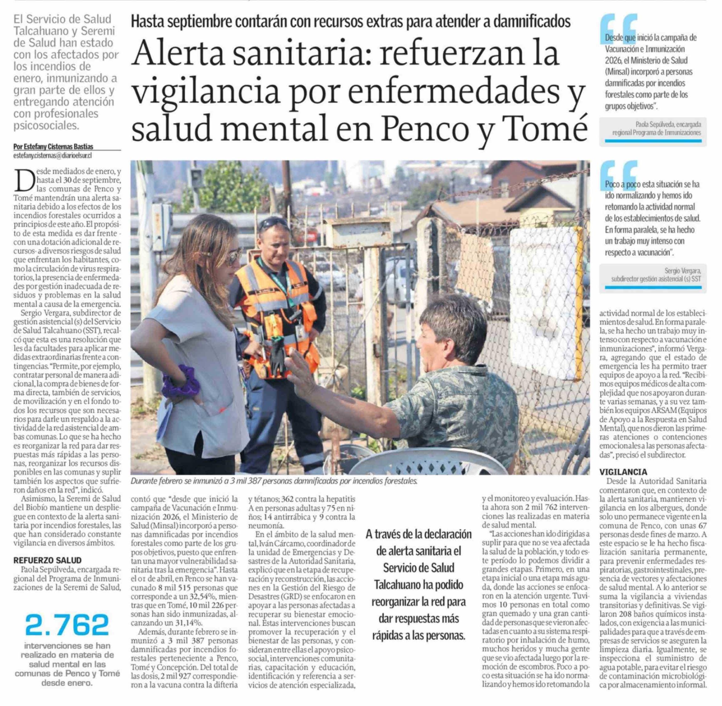 Alerta sanitaria: refuerzan la vigilancia por enfermedades y salud mental en Penco y Tomé