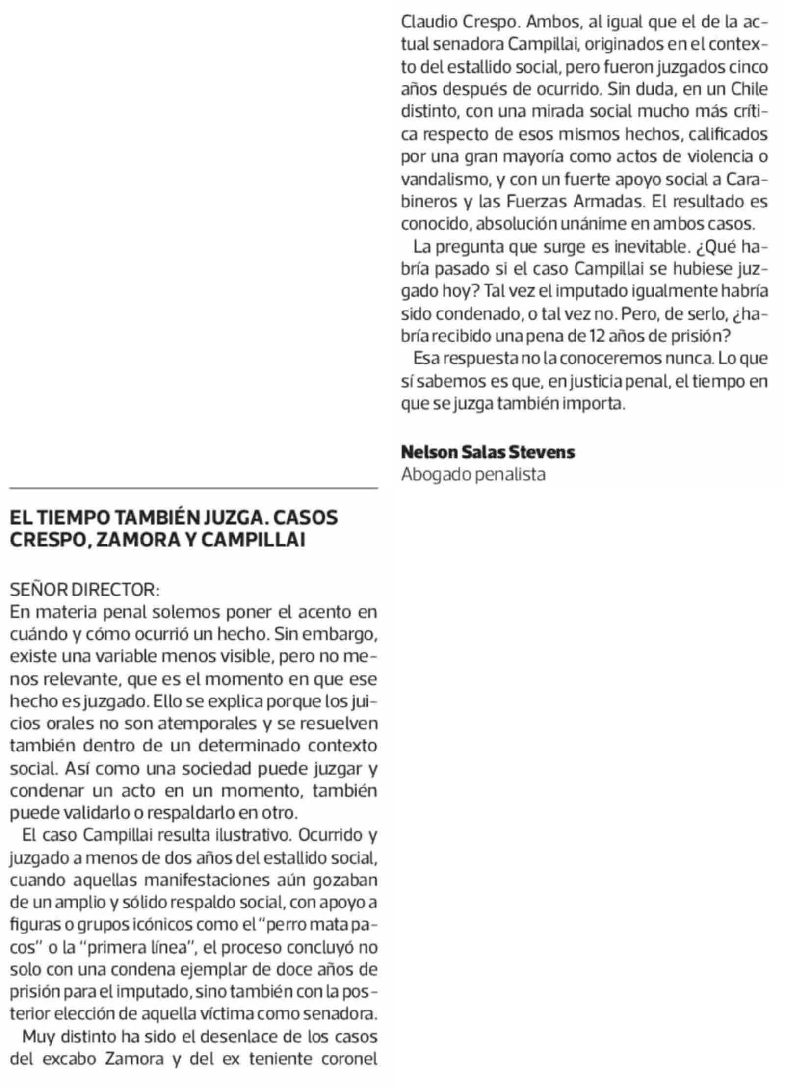 Cartas: EL TIEMPO TAMBIÉN JUZGA. CASOS CRESPO, ZAMORA Y CAMPILLAI