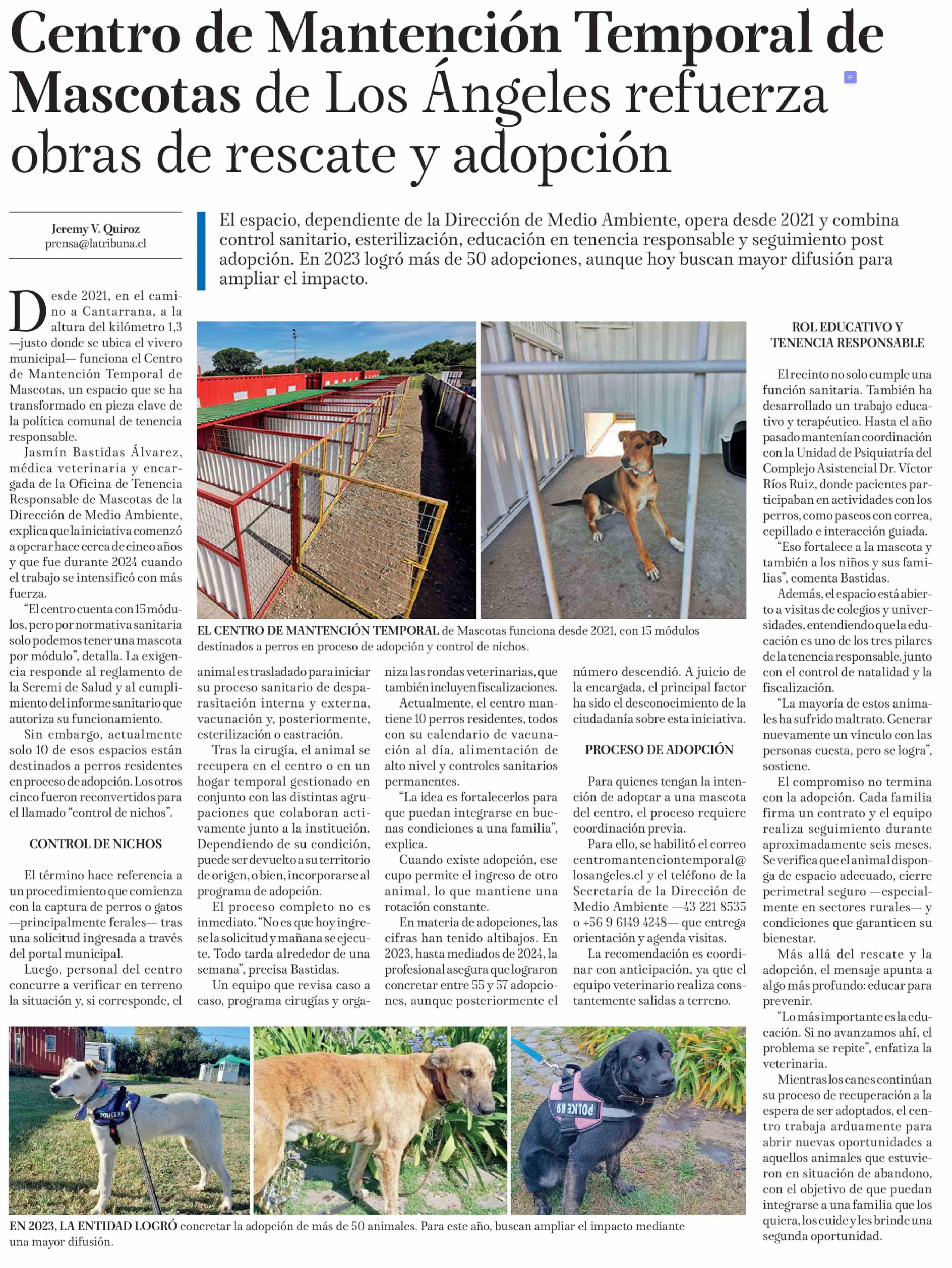 Centro de Mantención Temporal de Mascotas de Los Angeles refuerza obras de rescate y adopción