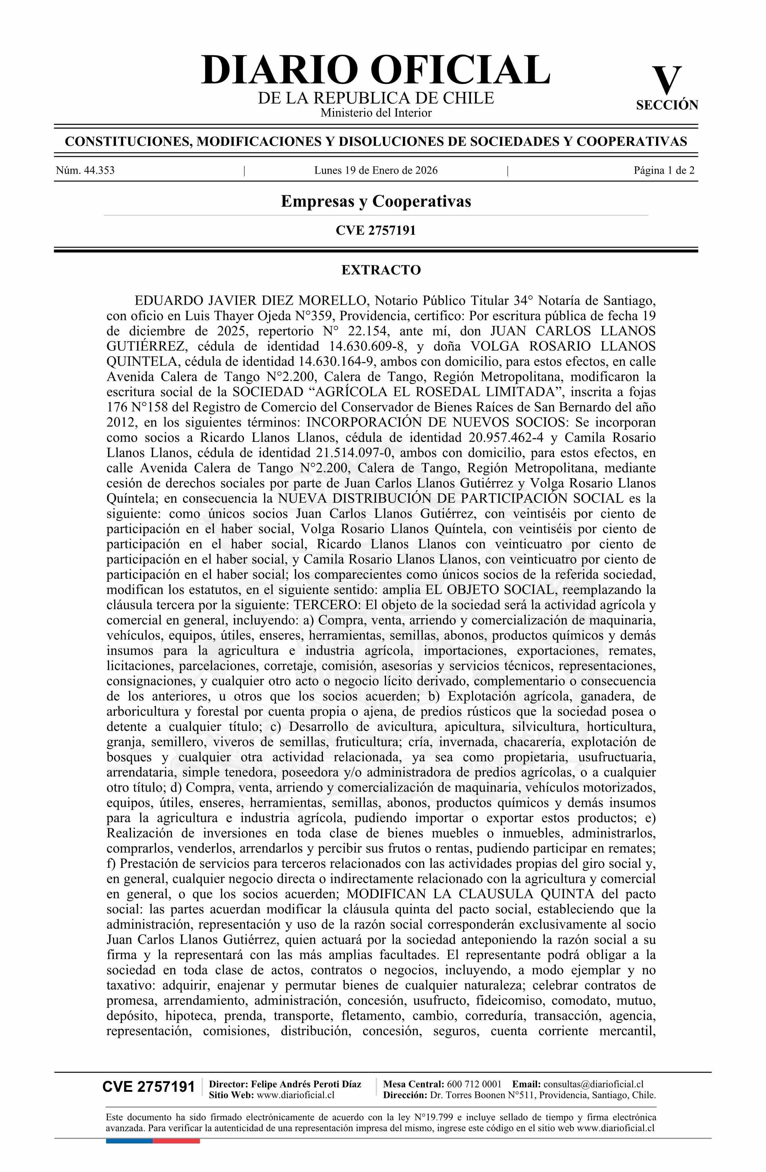 AGRICOLA EL ROSEDAL LIMITADA 76.191.898-2*