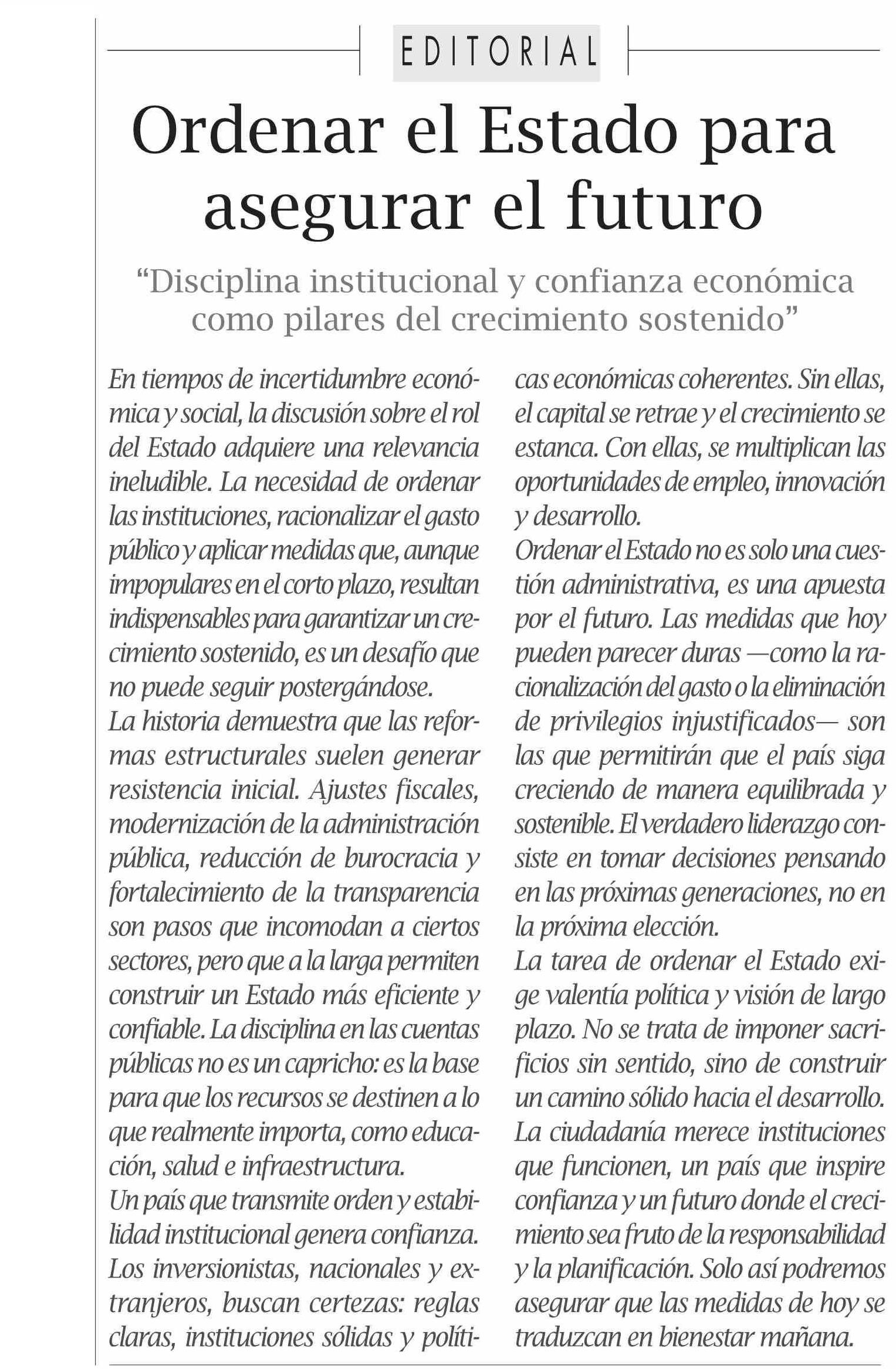 EDITORIAL: Ordenar el Estado para asegurar el futuro