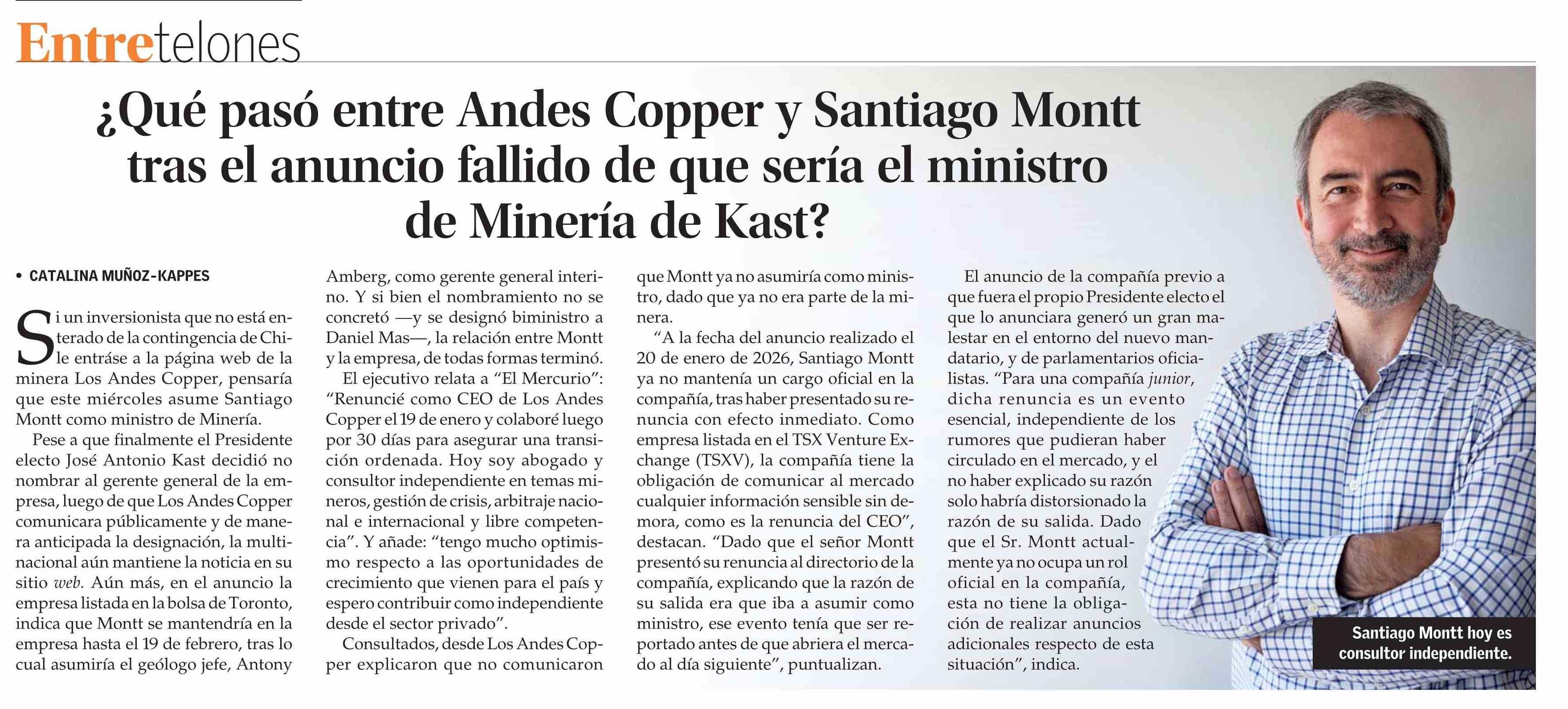 ¿Qué pasó entre Andes Copper y Santiago Montt tras el anuncio fallido de que sería el ministro de Minería de Kast?