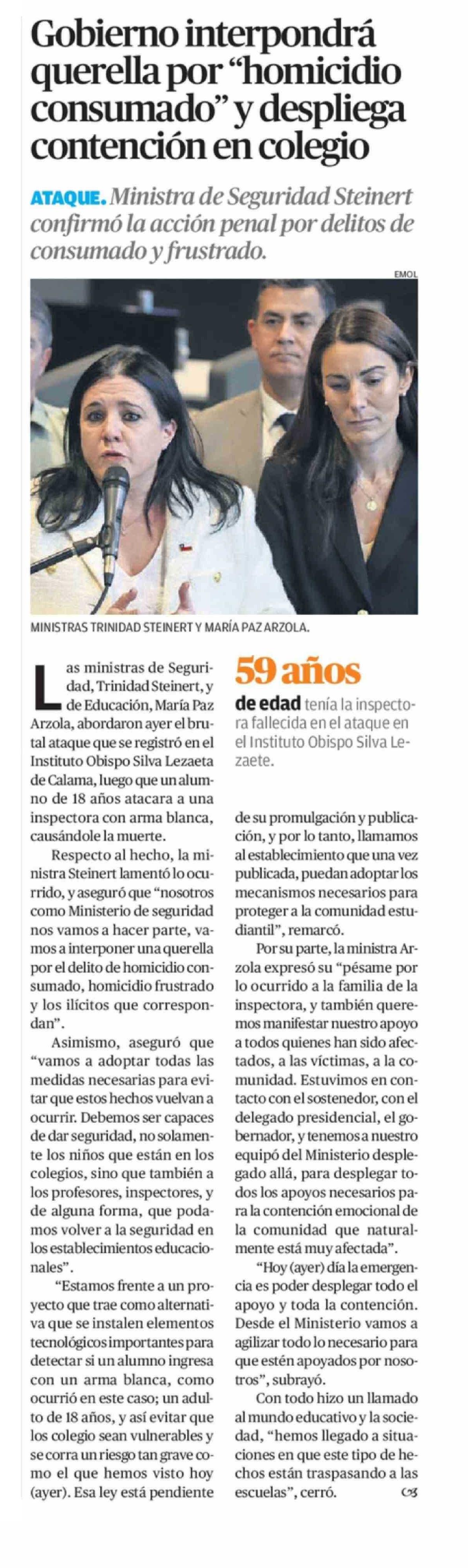 Gobierno interpondrá querella por "homicidio contención en colegio