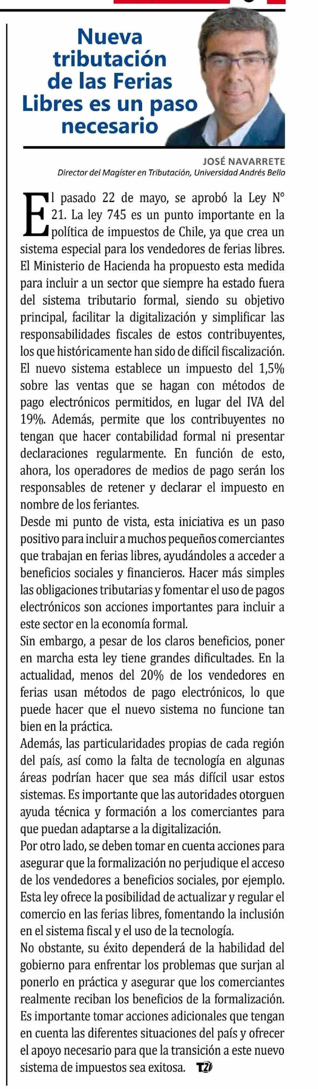 COLUMNAS DE OPINIÓN: Nueva tributación de las Ferias Libres es un paso necesario