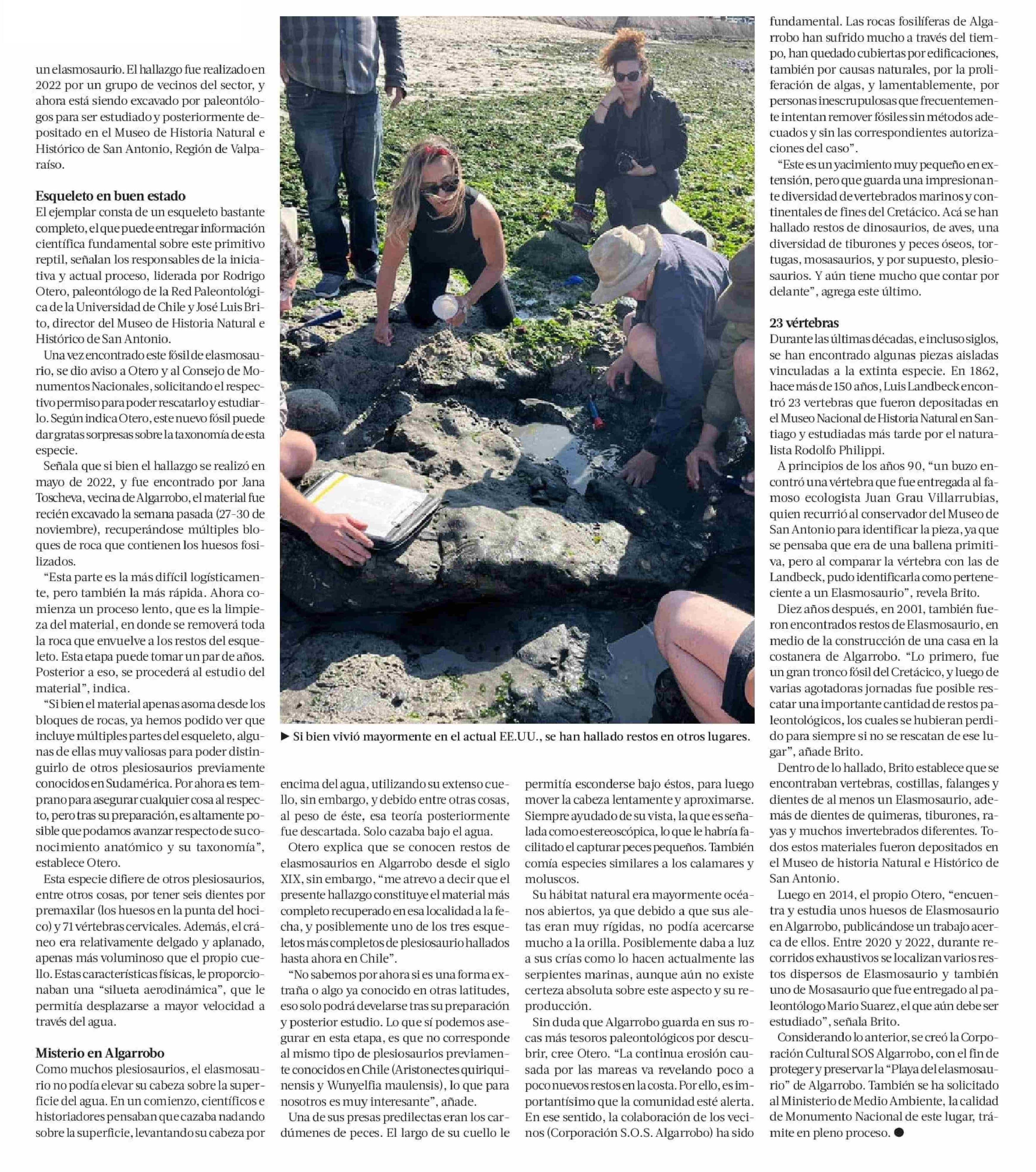 Medía 14 metros y pesaba 2 toneladas: excavan fósil de enigmático y extinto reptil marino en Algarrobo