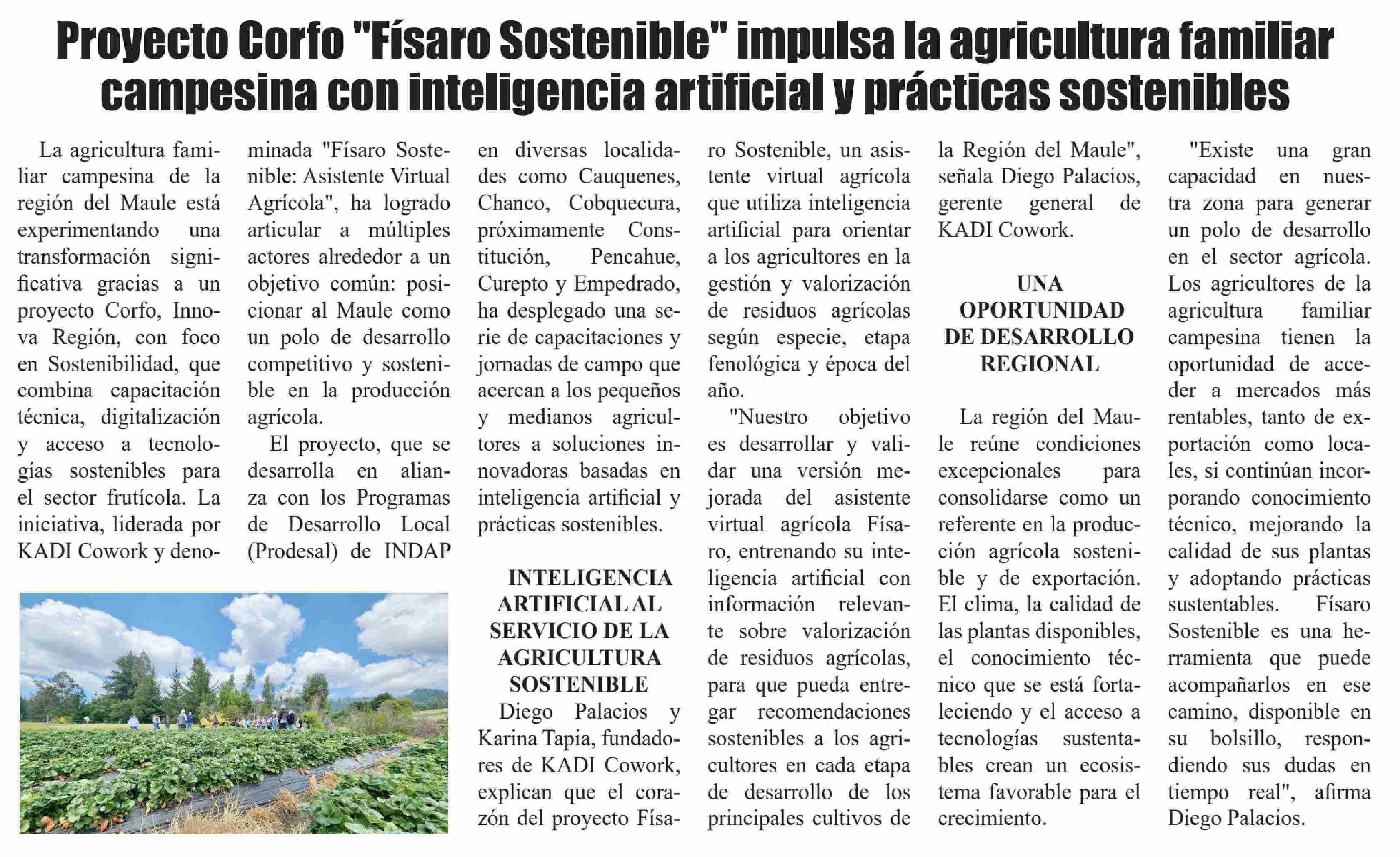 Título: Proyecto Corfo "Físaro Sostenible" impulsa la agricultura familiar campesina con inteligencia artificial y prácticas sostenibles