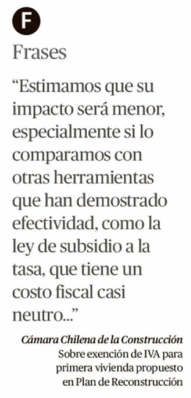 Título: F Frases "Estimamos que su impacto será menor, especialmente si lo comparamos con otras herramientas que han demostrado efectividad, como la ley de subsidio a la tasa, que tiene un costo fiscal casi neutro ... "