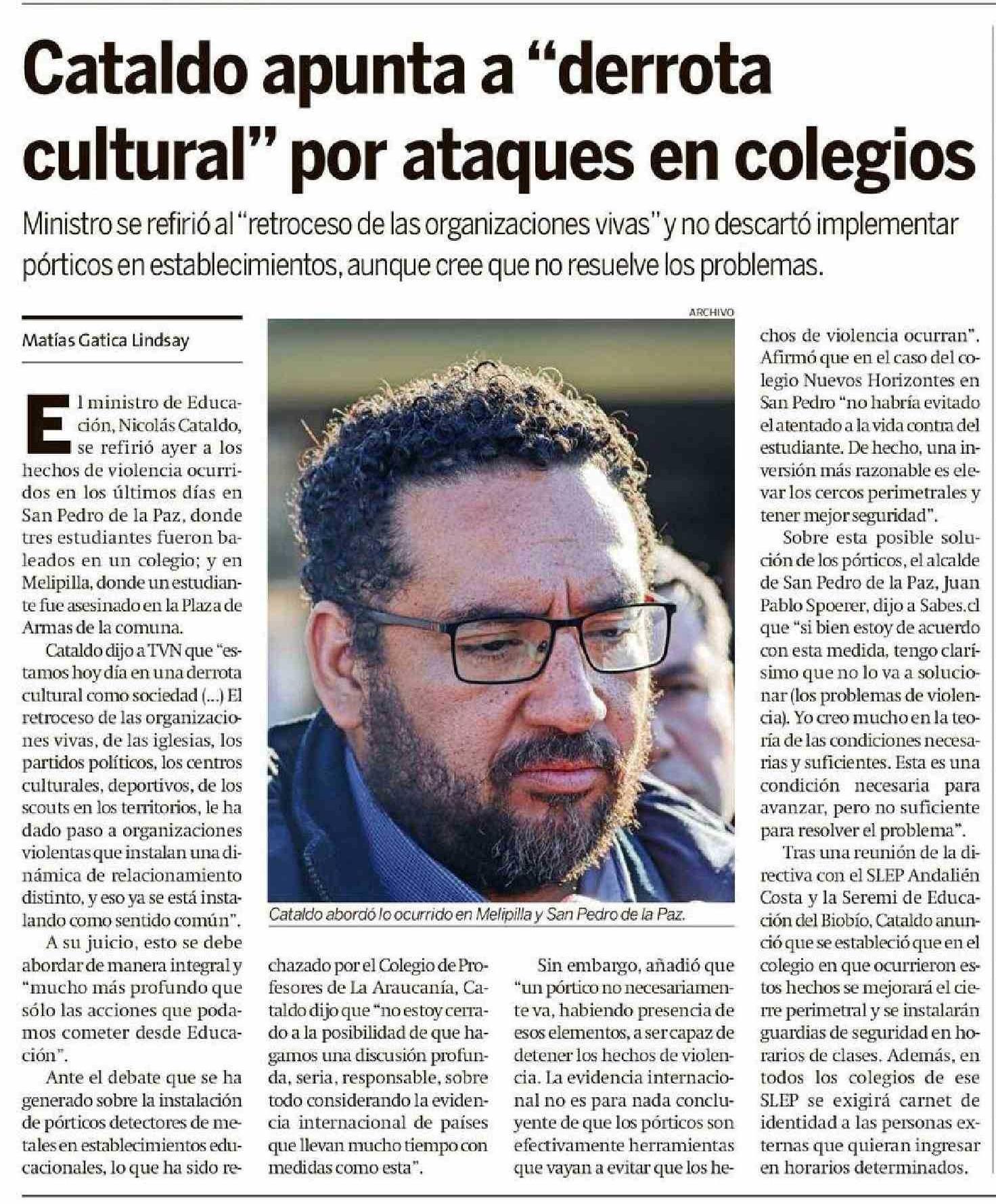 Cataldo apunta a “derrota cultural” por ataques en colegios