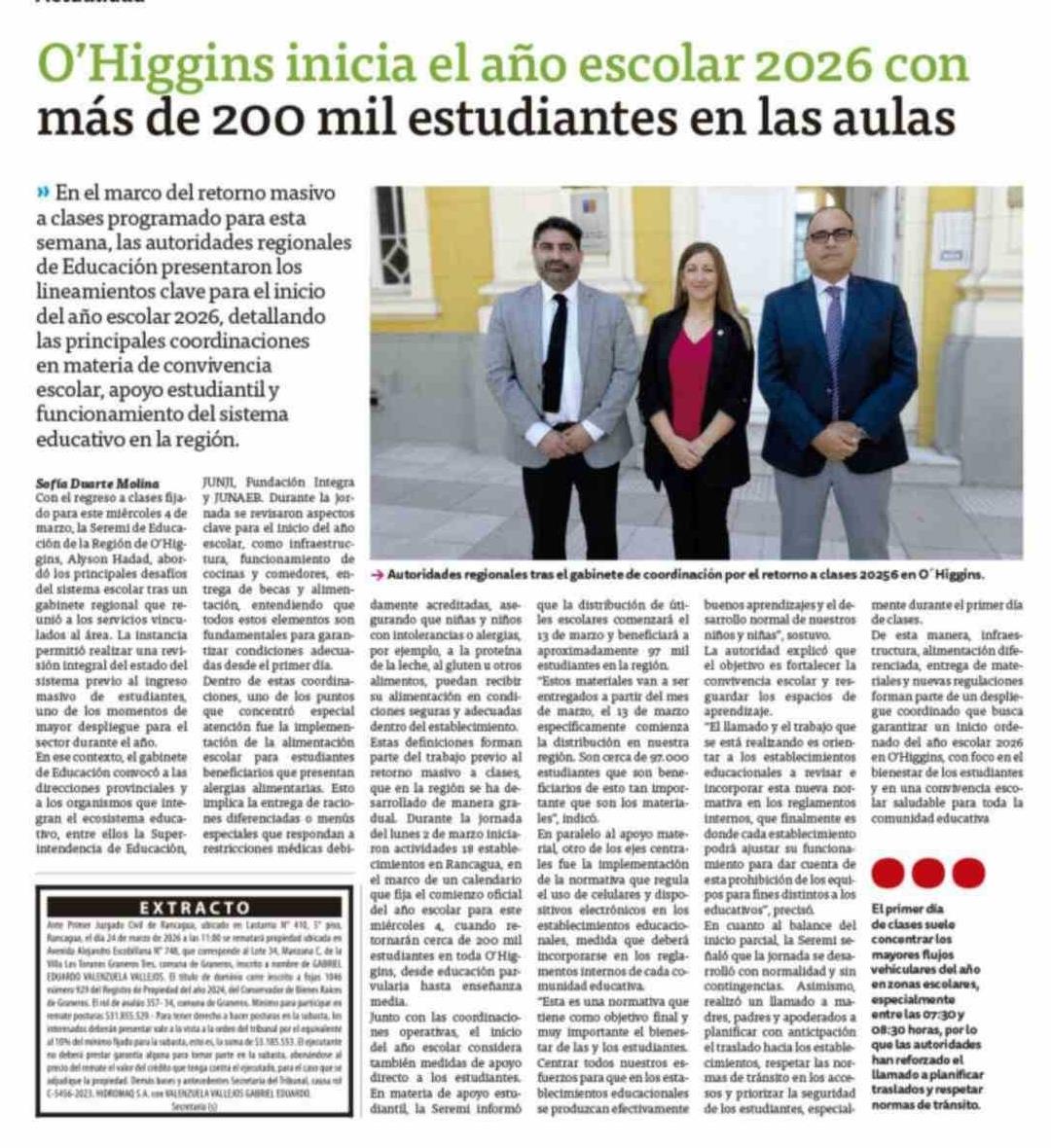 O'Higgins inicia el año escolar 2026 con más de 200 mil estudiantes en las aulas