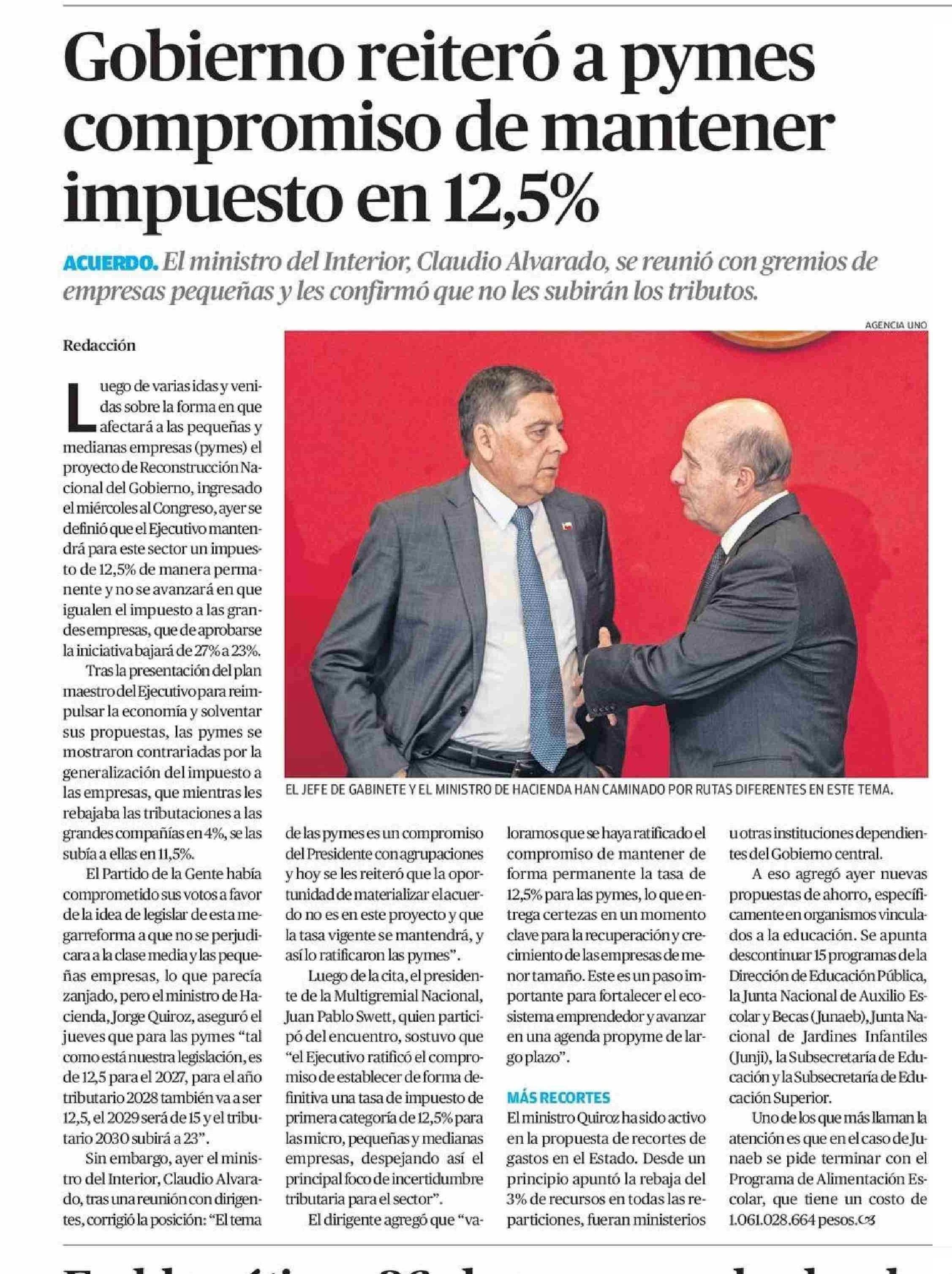 Gobierno reiteró a pymes compromiso de mantener impuesto en 12,5%