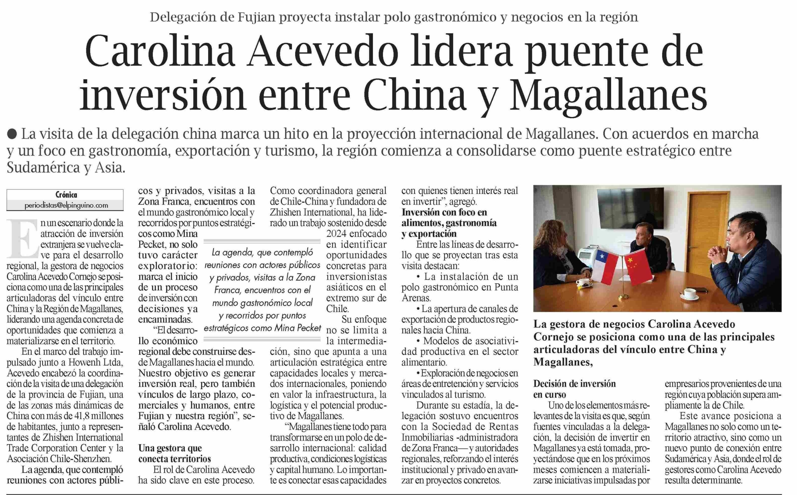 Carolina Acevedo lidera puente de inversión entre China y Magallanes