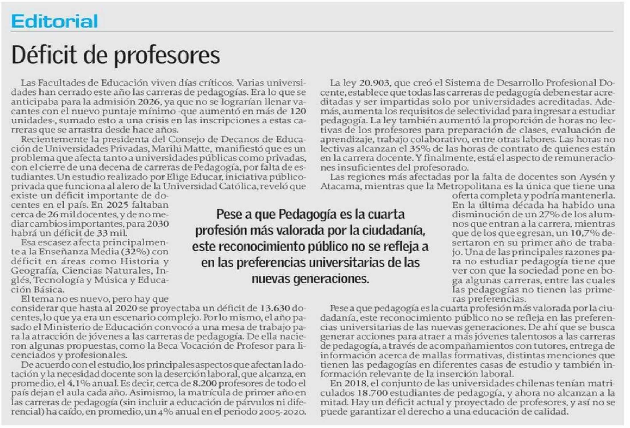 Editorial: Déficit de profesores