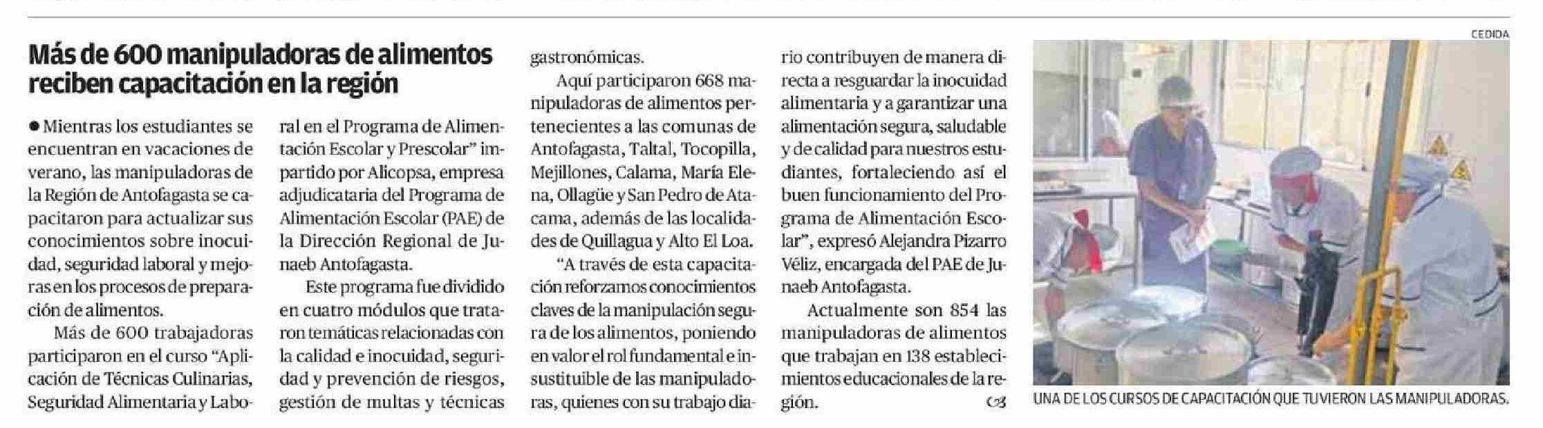 Más de 600 manipuladoras de alimentos reciben capacitación en la región