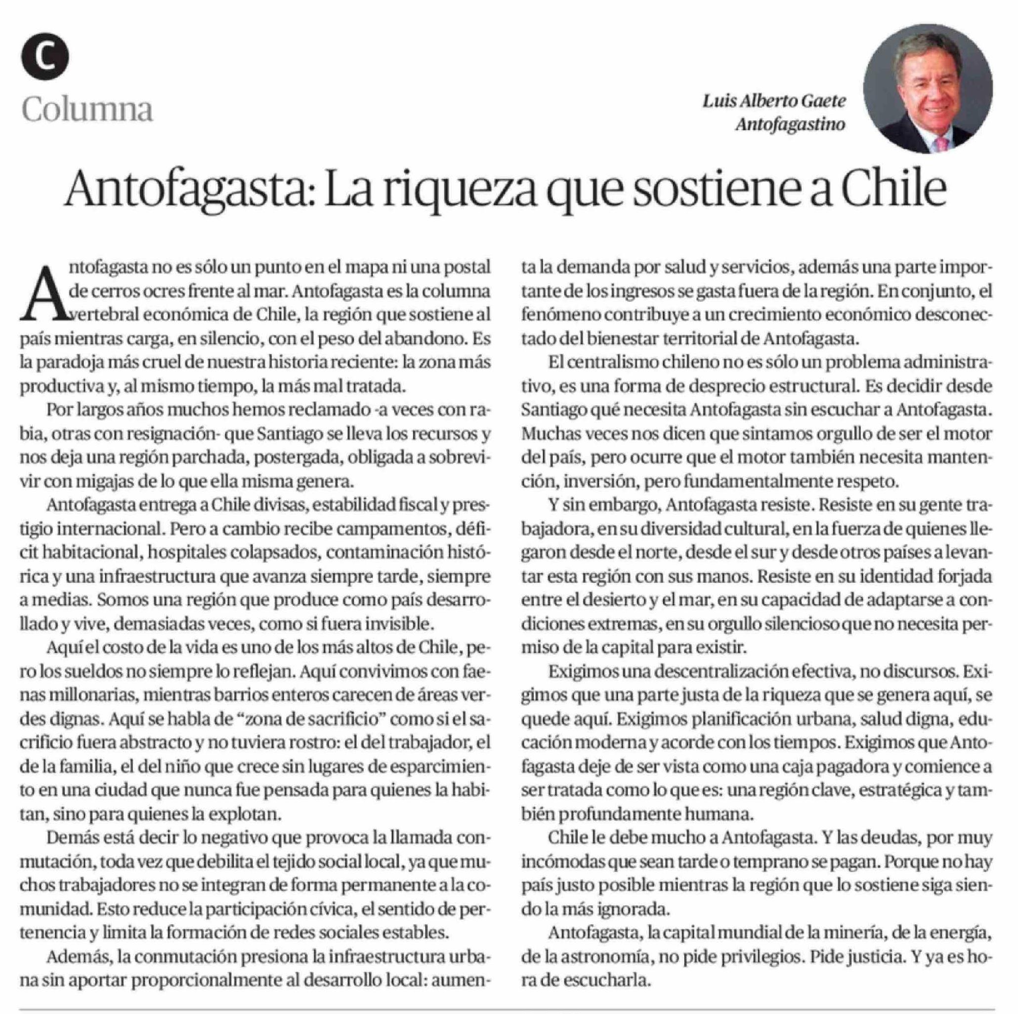 Columnas de Opinión: Antofagasta: La riqueza que sostiene a Chile