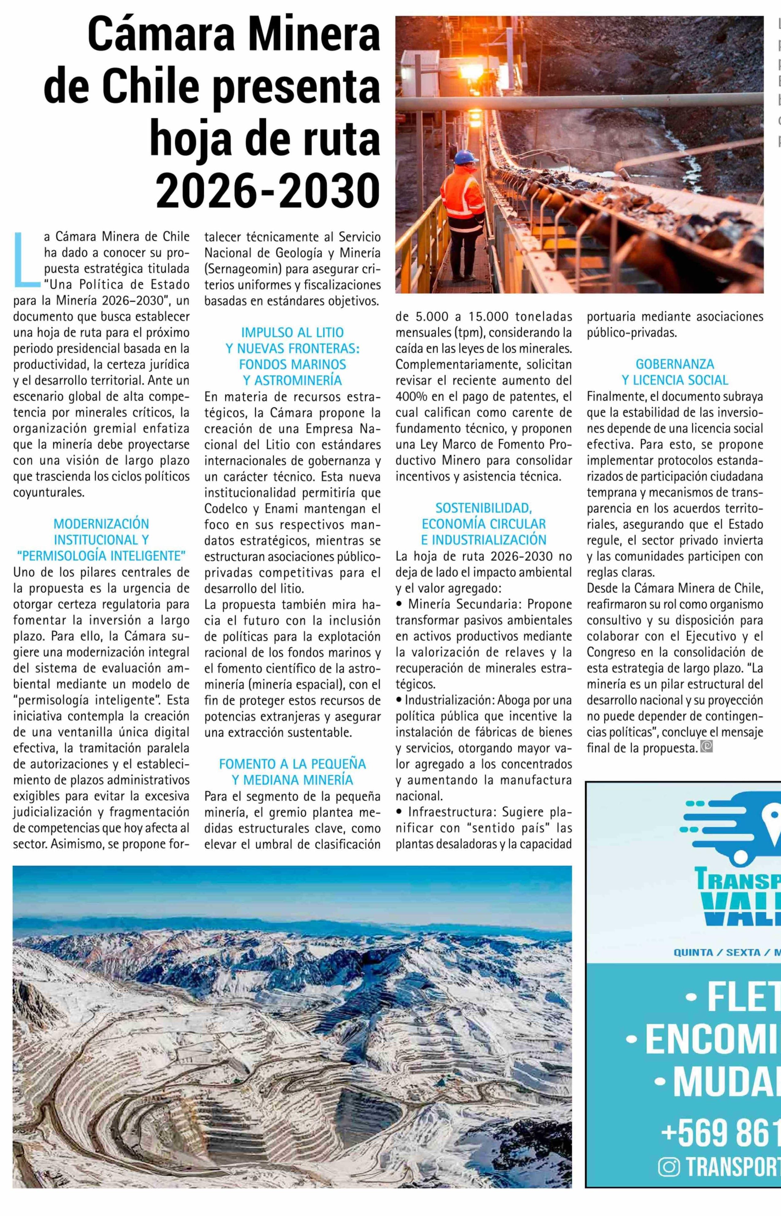 Cámara Minera de Chile presenta hoja de ruta 2026-2030