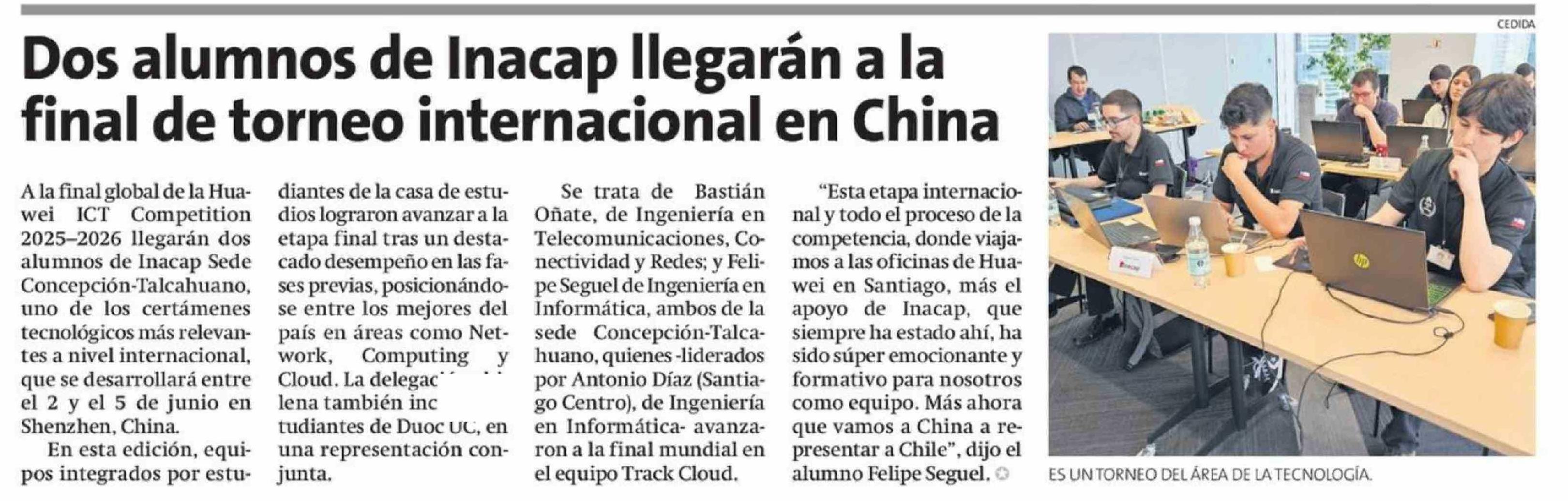 Dos alumnos de Inacap llegarán a la final de torneo internacional en China