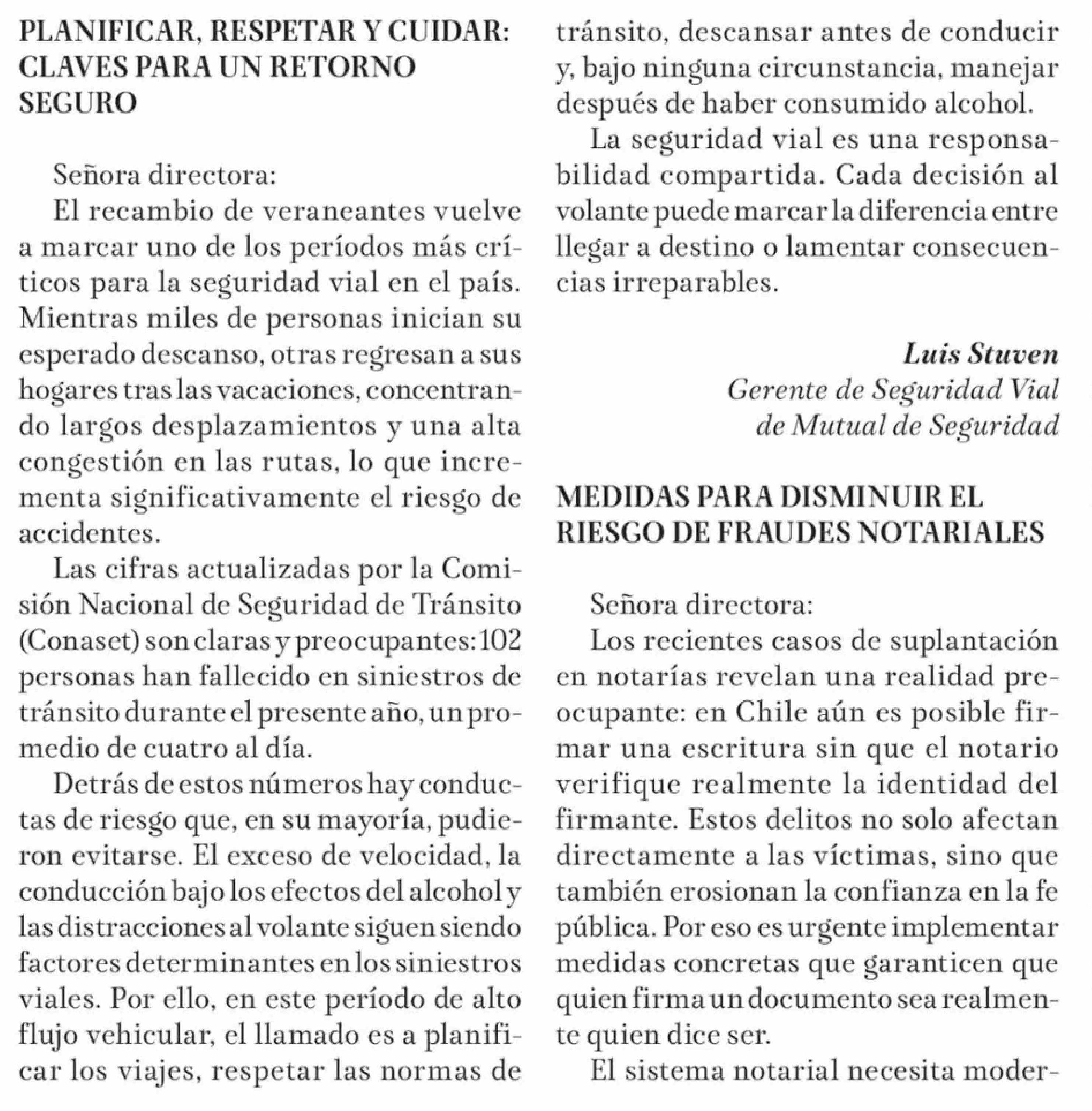 Cartas: PLANIFICAR, RESPETAR Y CUIDAR: CLAVES PARA UN RETORNO SEGURO