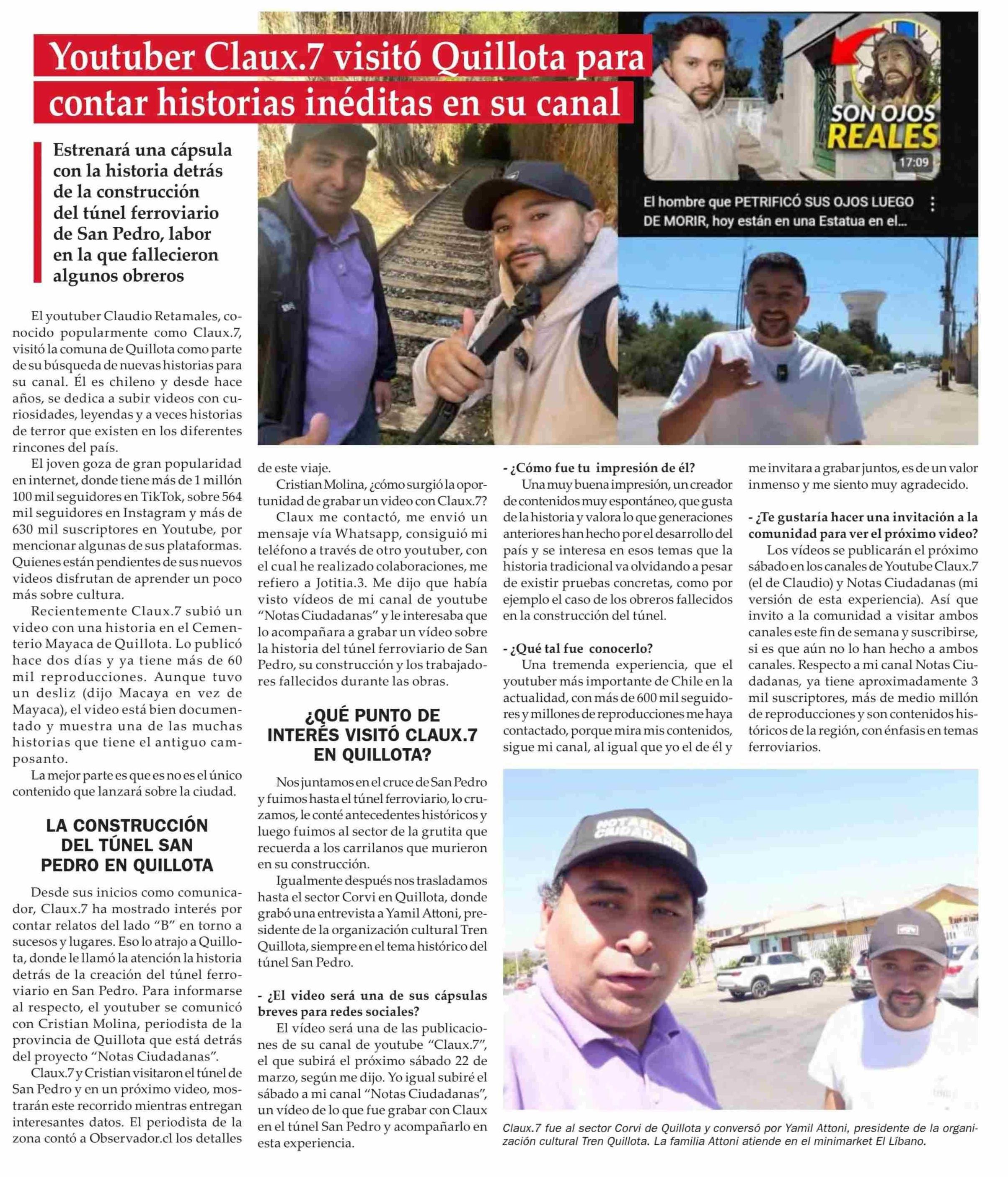 Youtuber Claux.7 visitó Quillota para contar historias inéditas en su canal