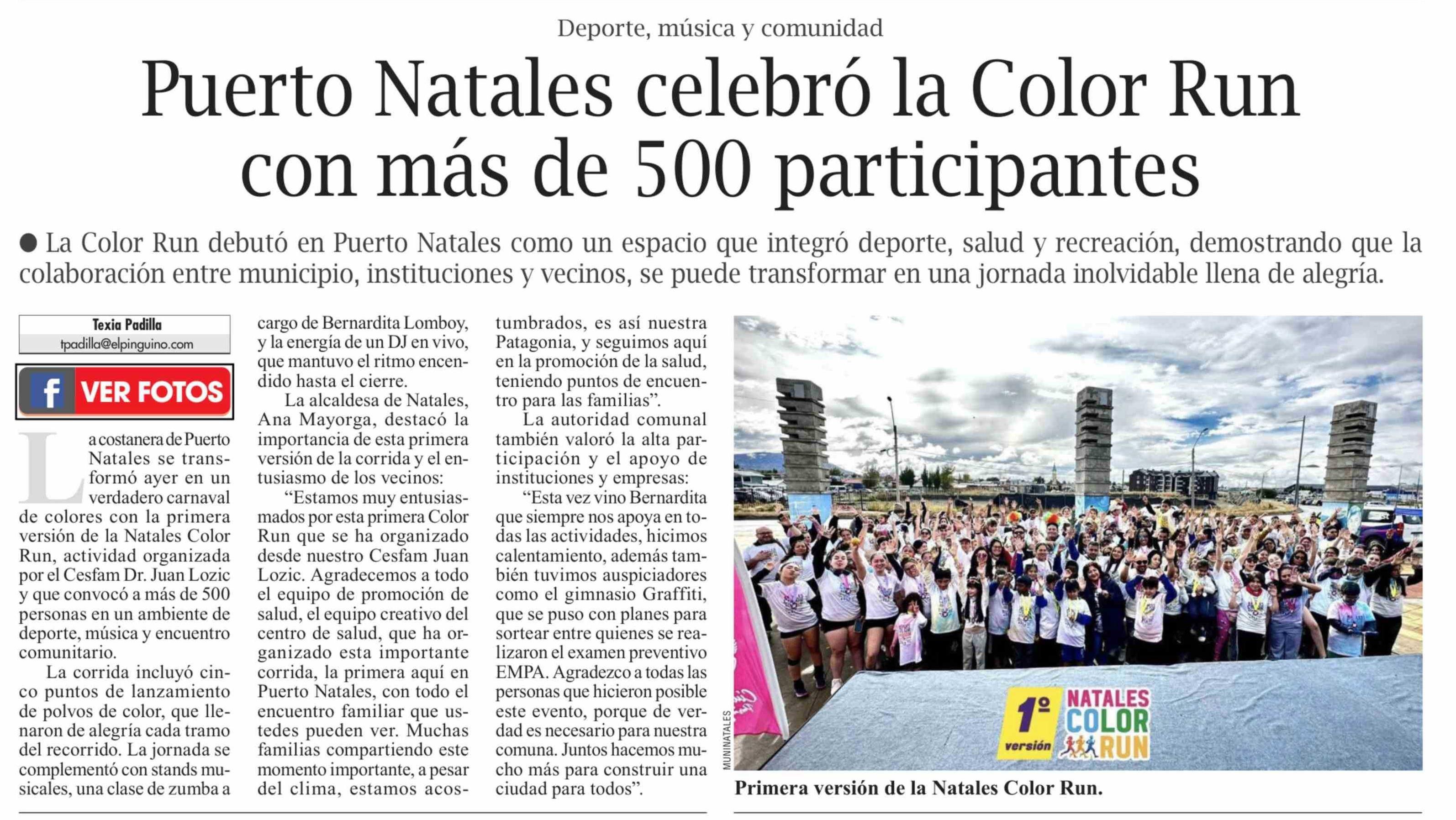 Puerto Natales celebró la Color Run con más de 500 participantes