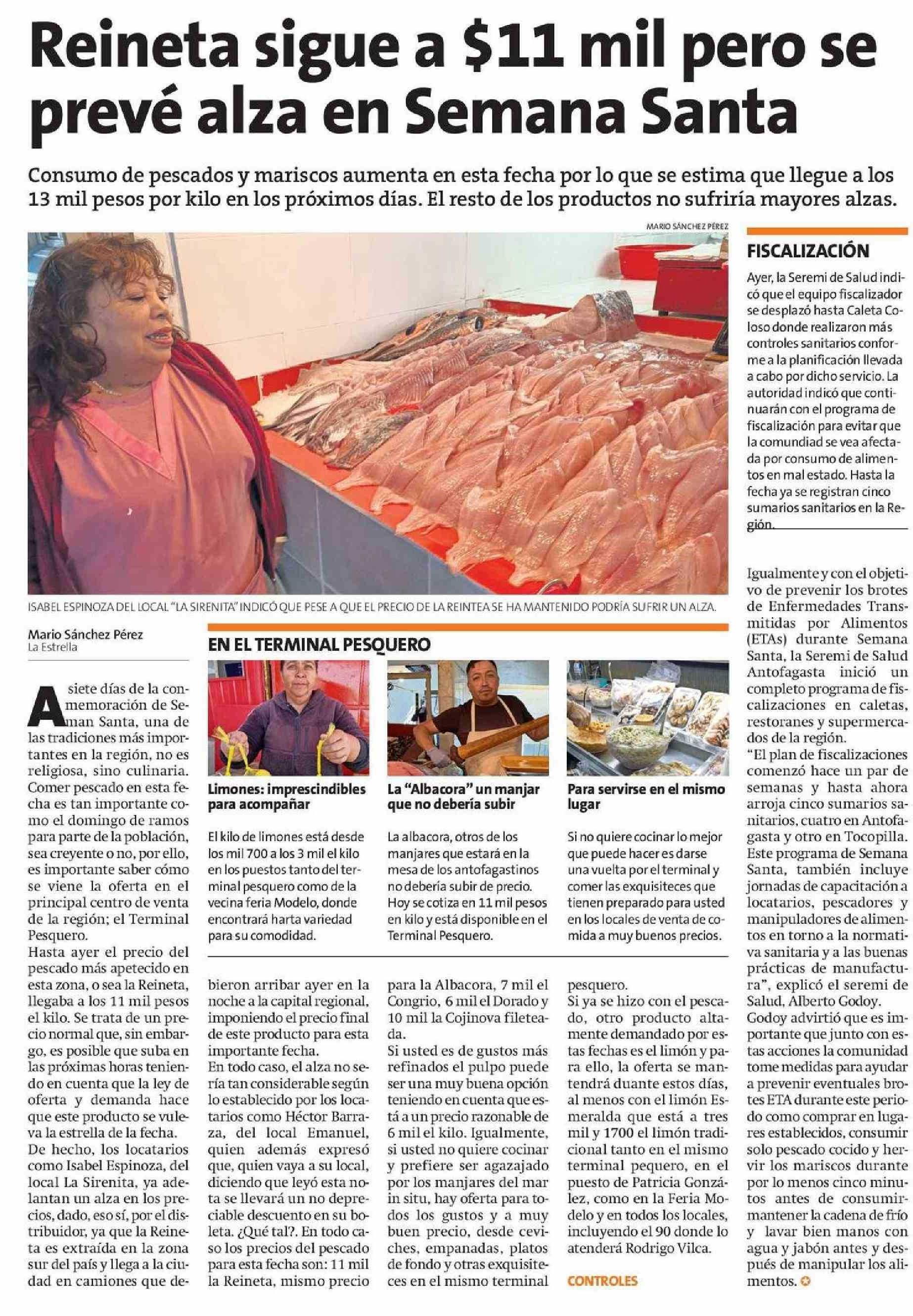 Reineta sigue a $11 mil pero se prevé alza en Semana Santa