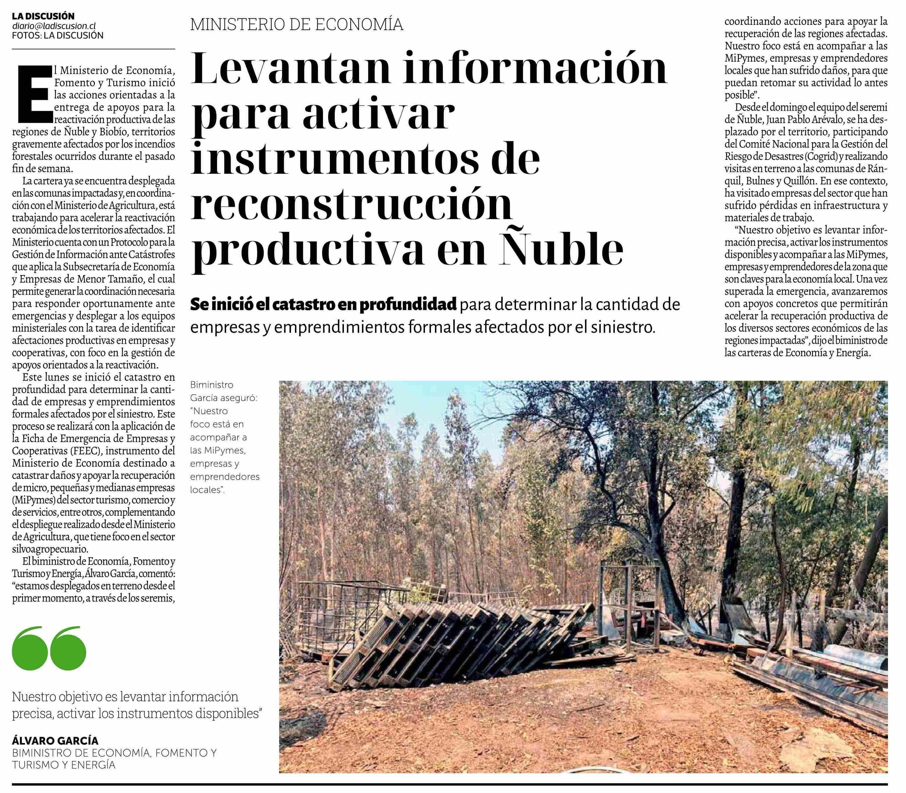 Levantan información para activar instrumentos de reconstrucción productiva en Nuble