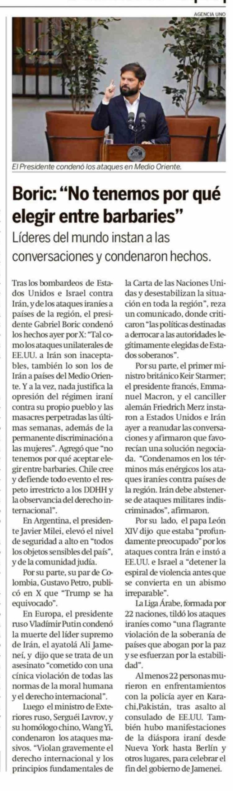 Boric: "No tenemos por qué elegir entre barbaries"