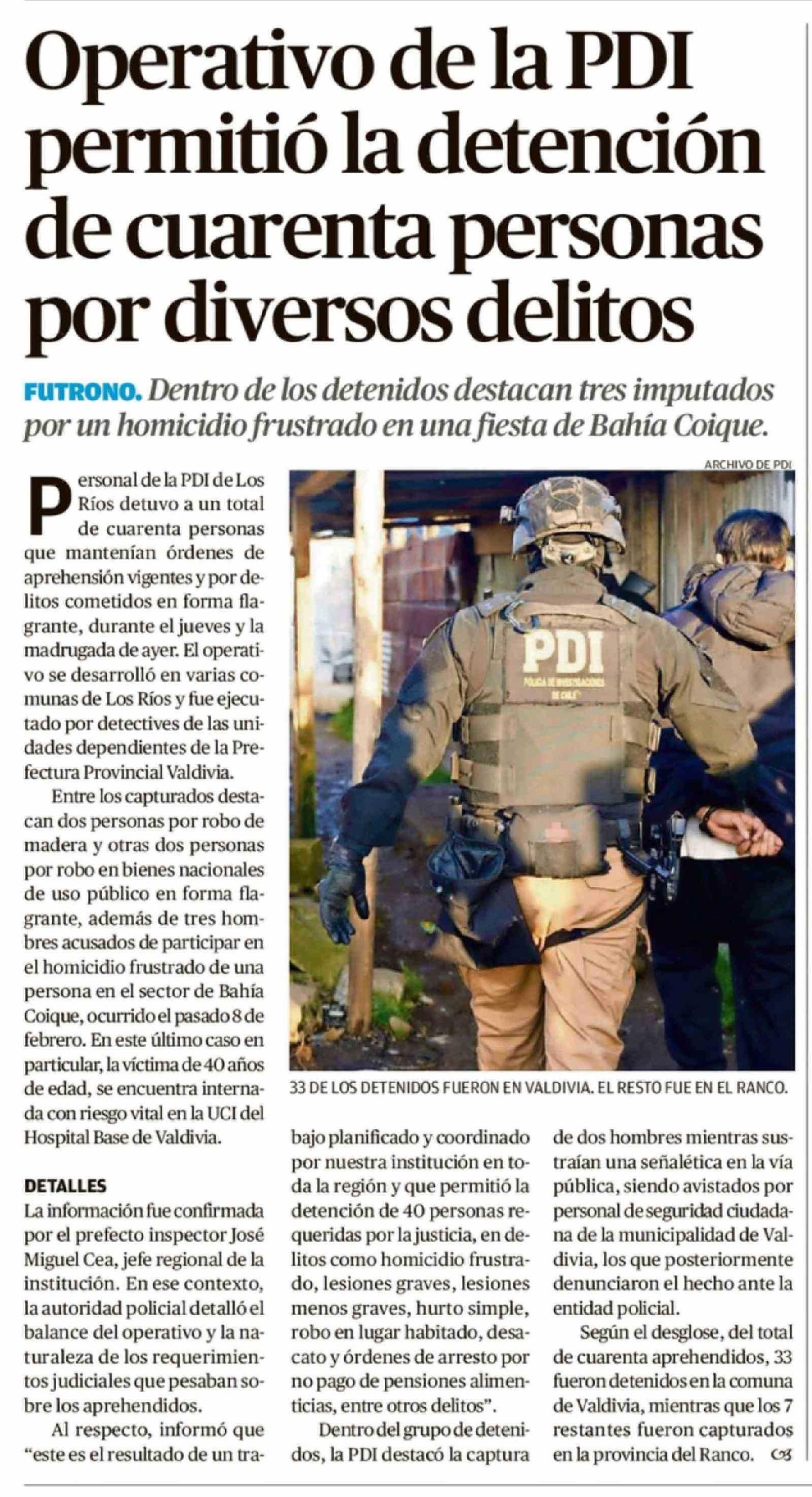 Operativo de la PDI permitió la detención de cuarenta personas por diversos delitos