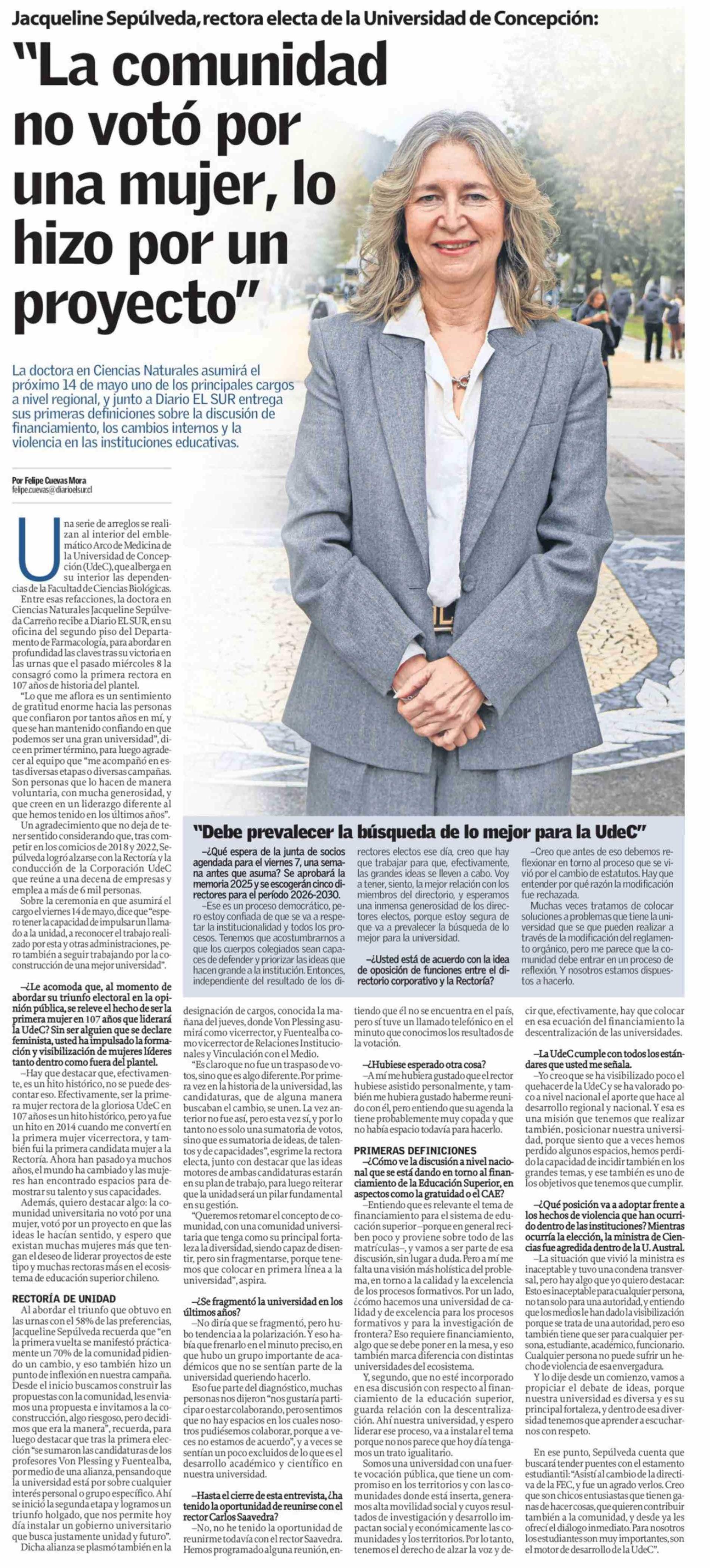 “La comunidad no votó por una mujer, lo. hizo por un proyecto”