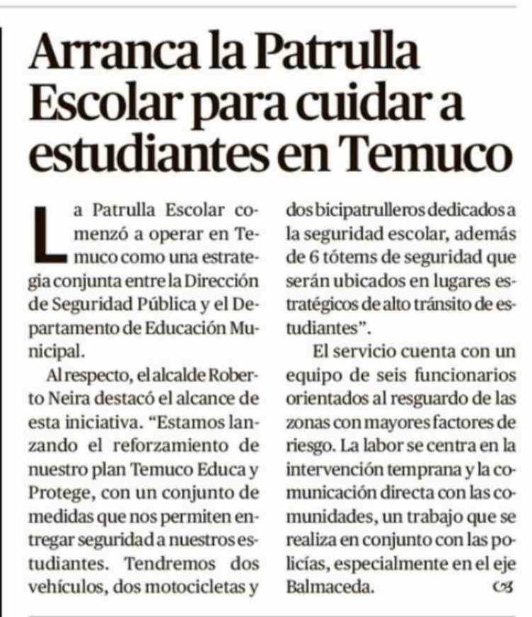 Arranca la Patrulla Escolar para cuidar a estudiantes en Temuco