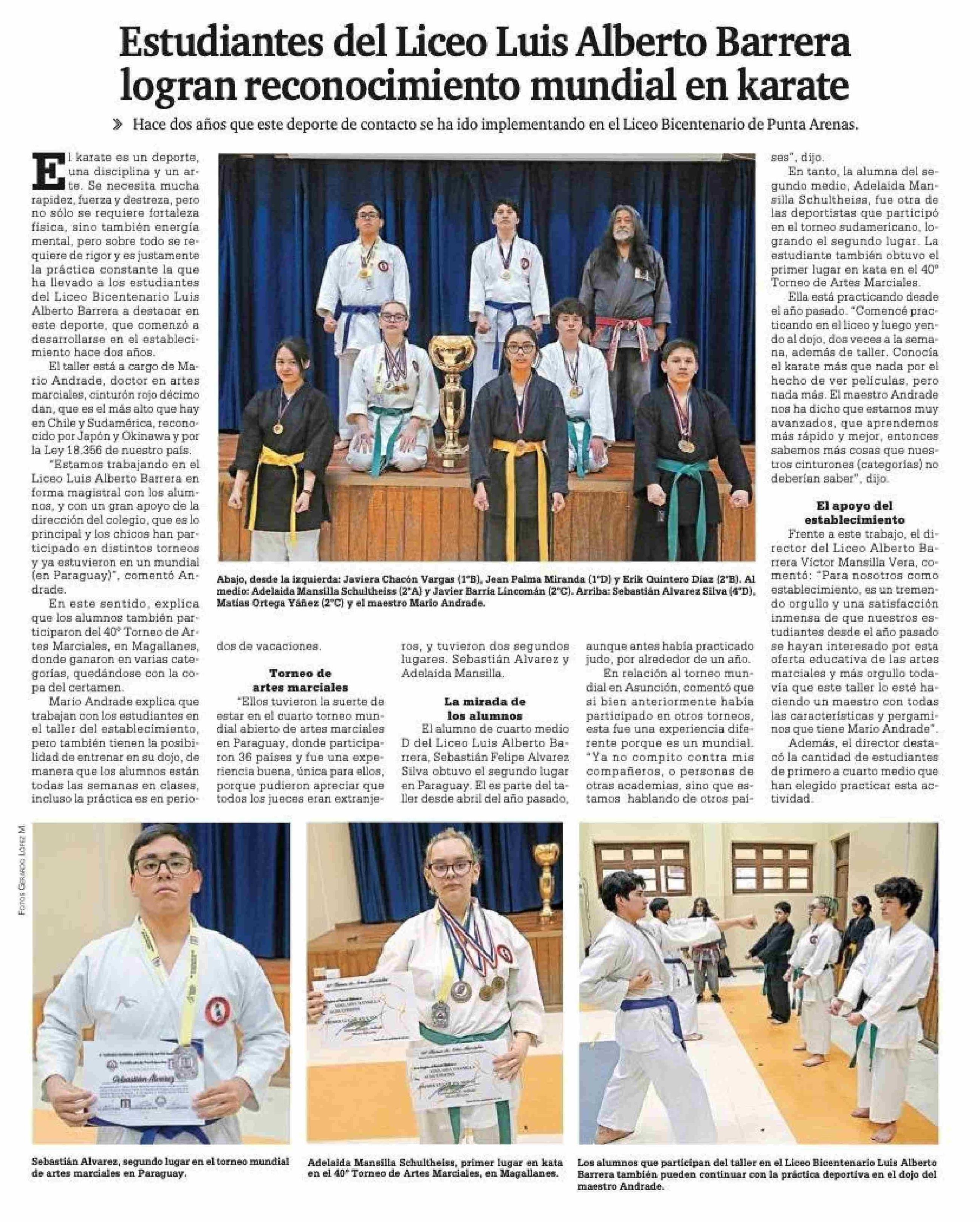 Estudiantes del Liceo Luis Alberto Barrera logran reconocimiento mundial en karate