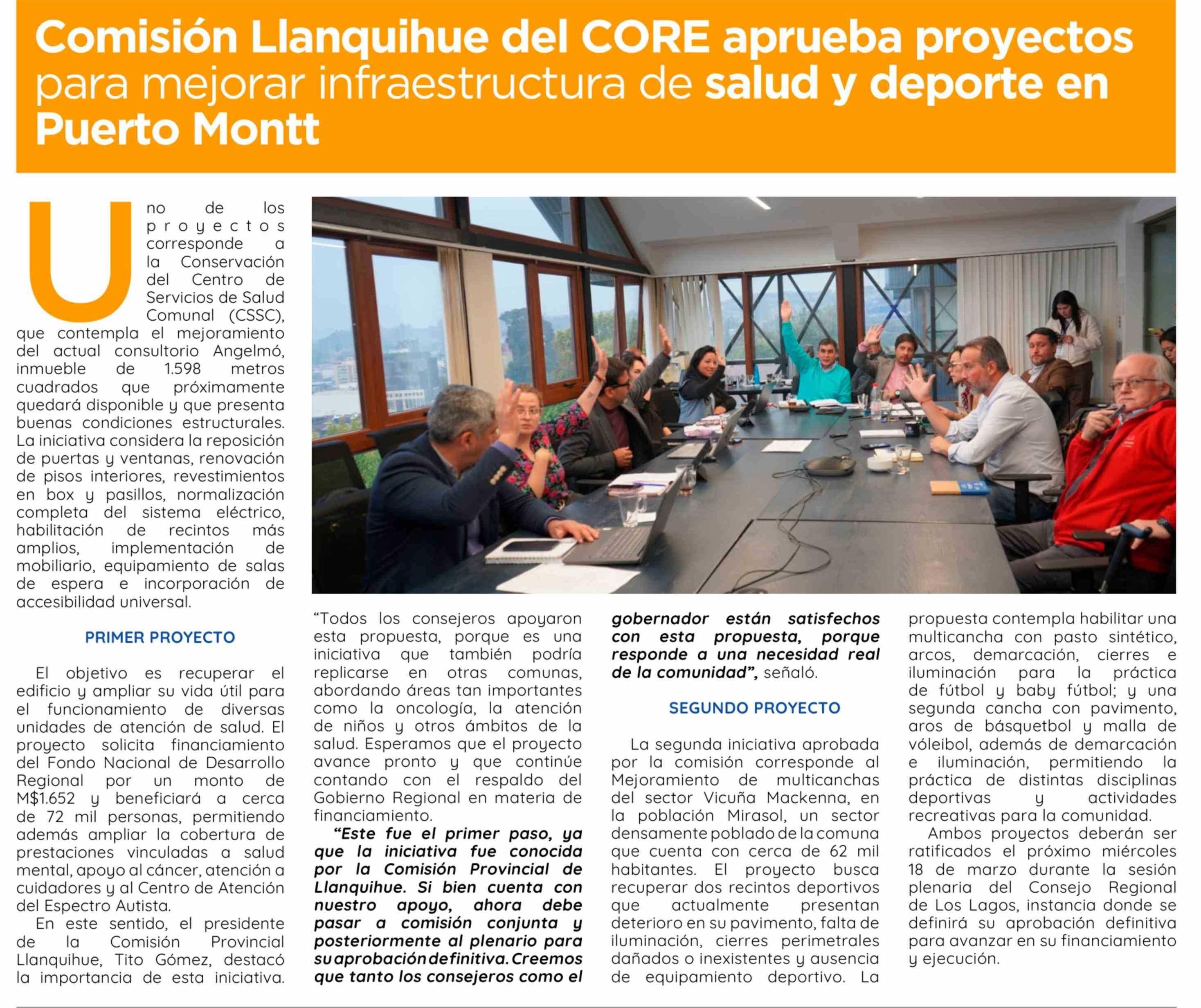 Título: Comisión Llanquihue del CORE aprueba proyectos para mejorar infraestructura de salud y deporte en Puerto Montt