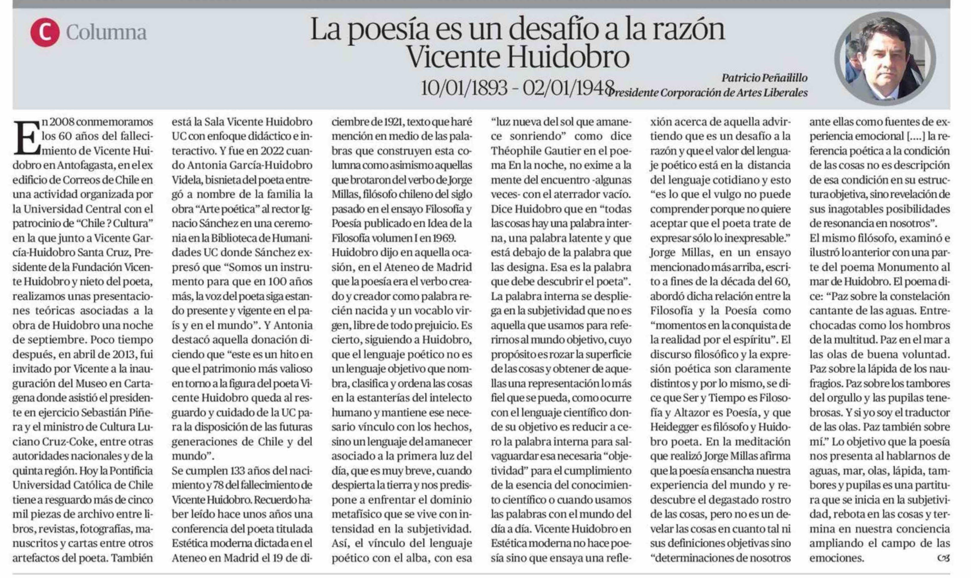 Columnas de Opinión: La poesía es un desafío a la razón Vicente Huidobro