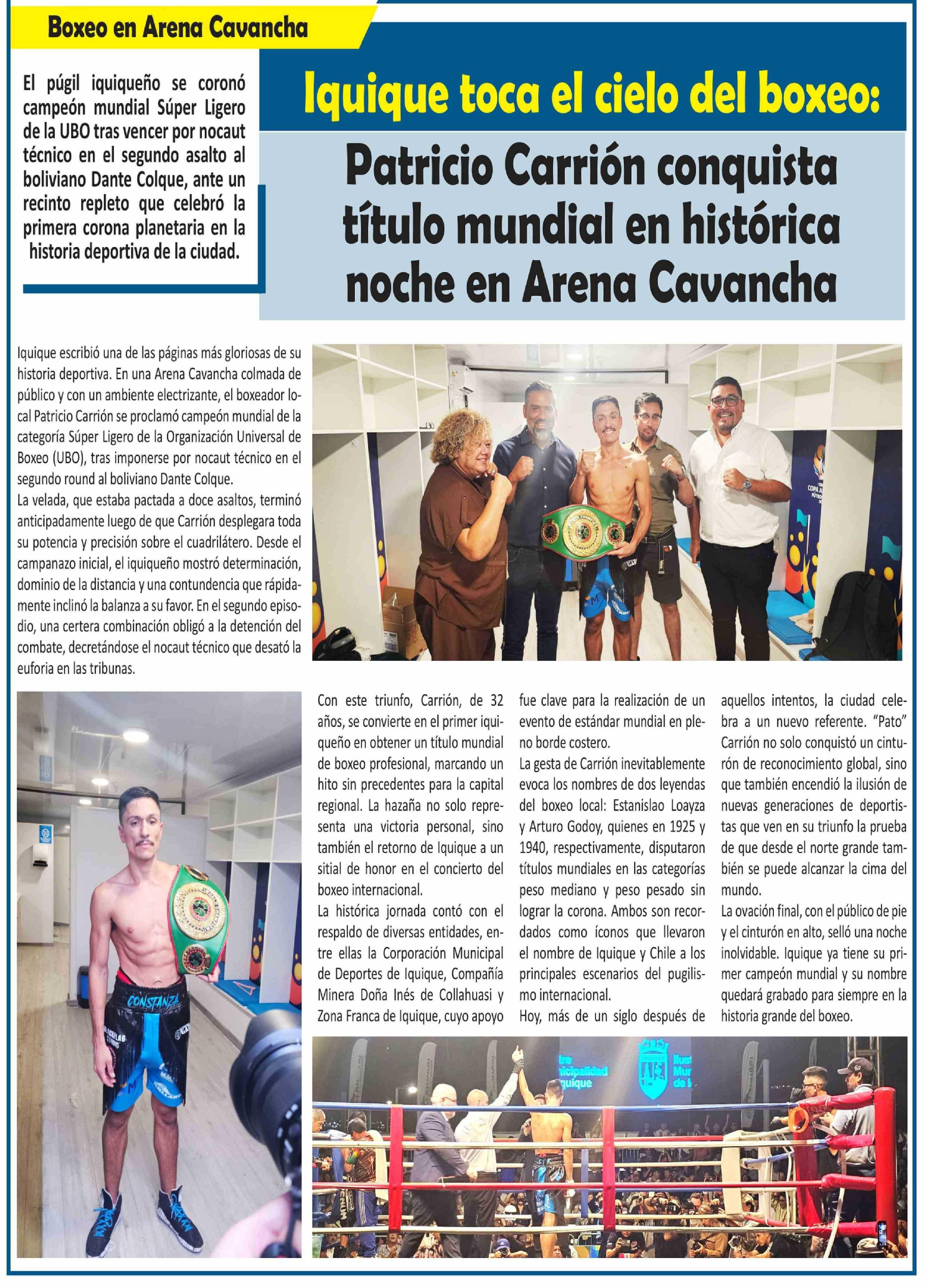 Patricio Carrión conquista título mundial en histórica noche en Arena Cavancha