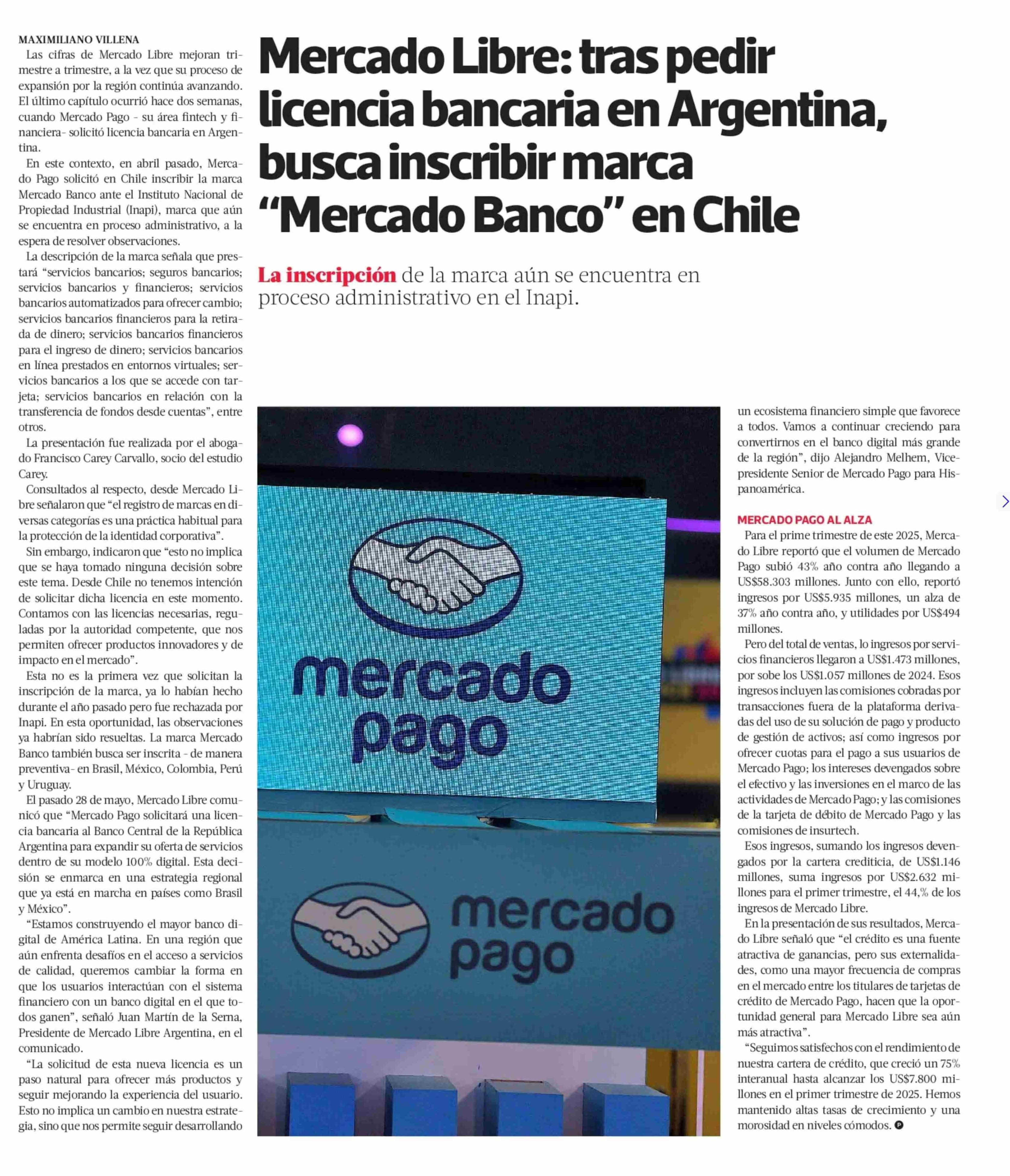Mercado Libre: tras pedir licencia bancaria en Argentina, busca inscribir marca "Mercado Banco" en Chile