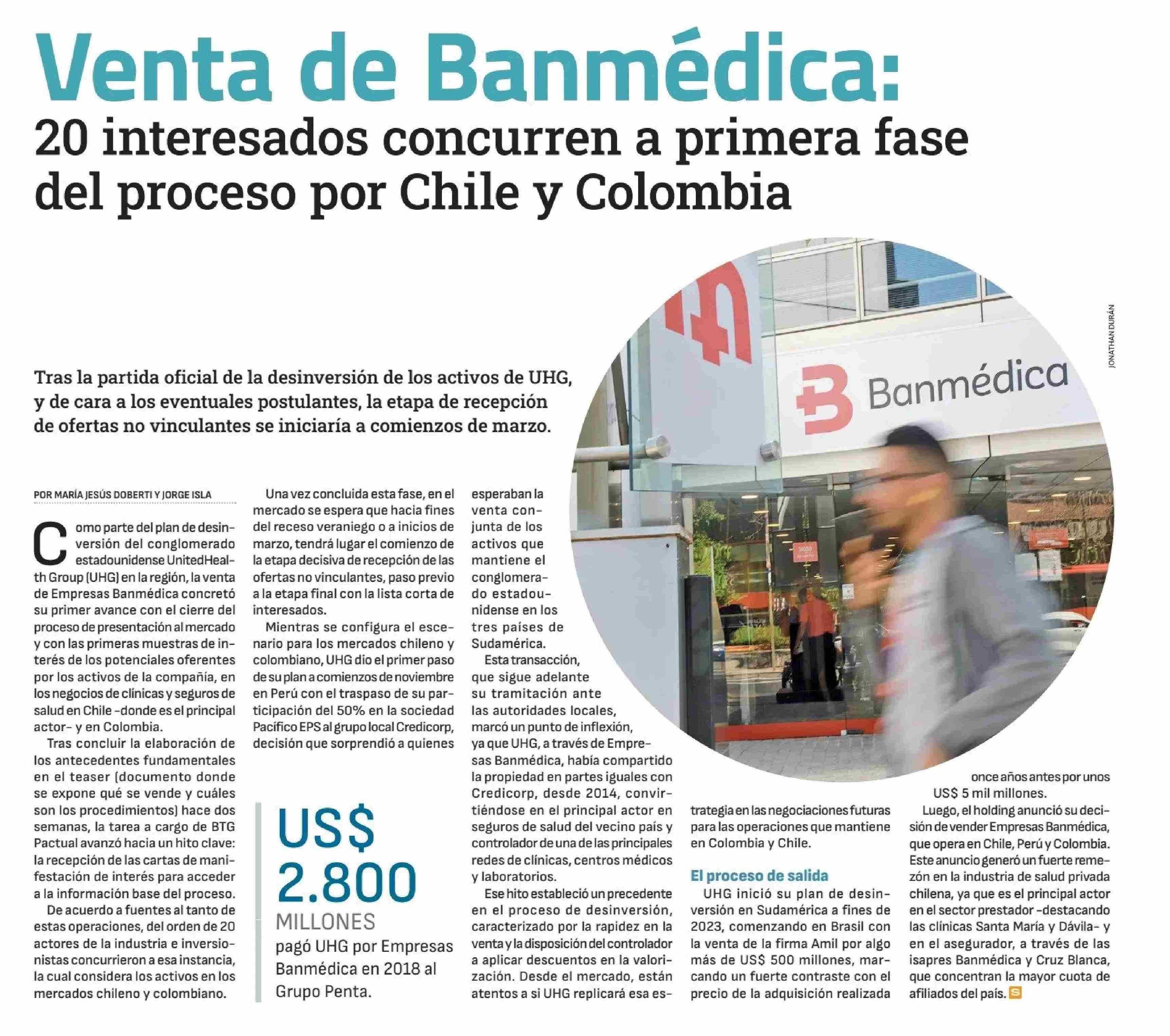 Venta de Banmédica: 20 interesados concurren a primera fase del proceso por Chile y Colombia