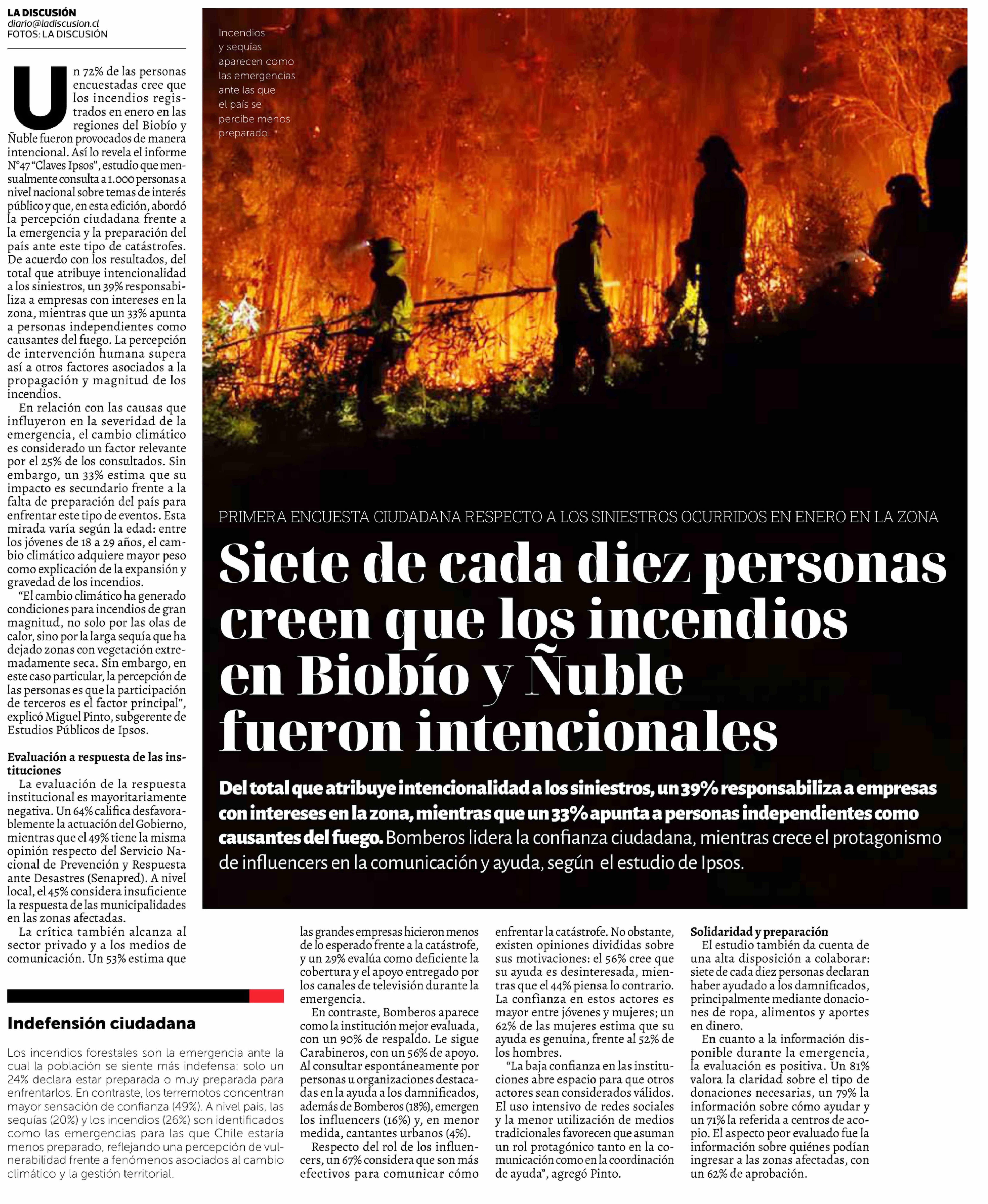 Siete de cada diez personas creen que los incendios en Biobio y Nuble fueron intencionales