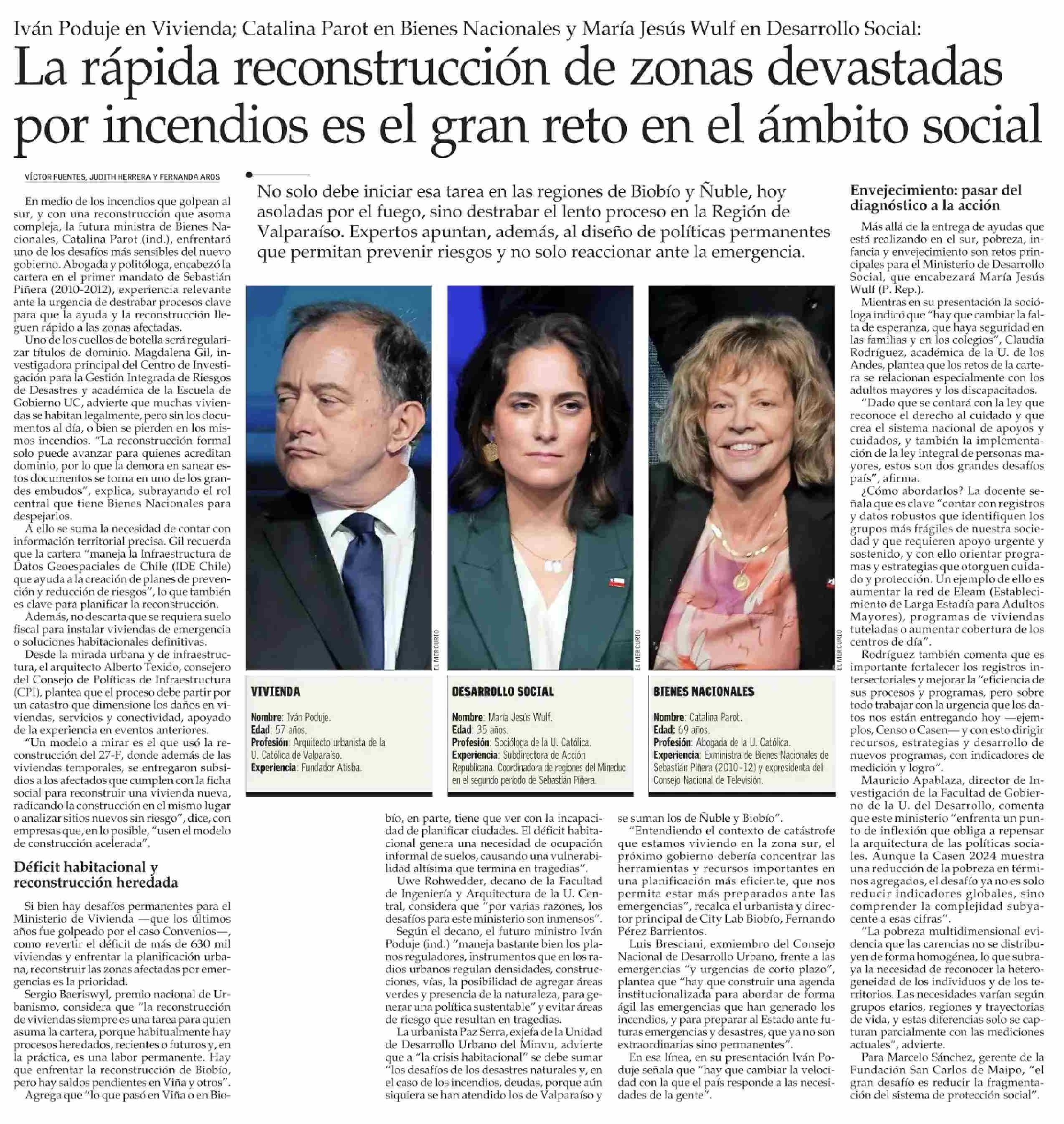 La rápida reconstrucción de zonas devastadas por incendios es el gran reto en el ámbito social