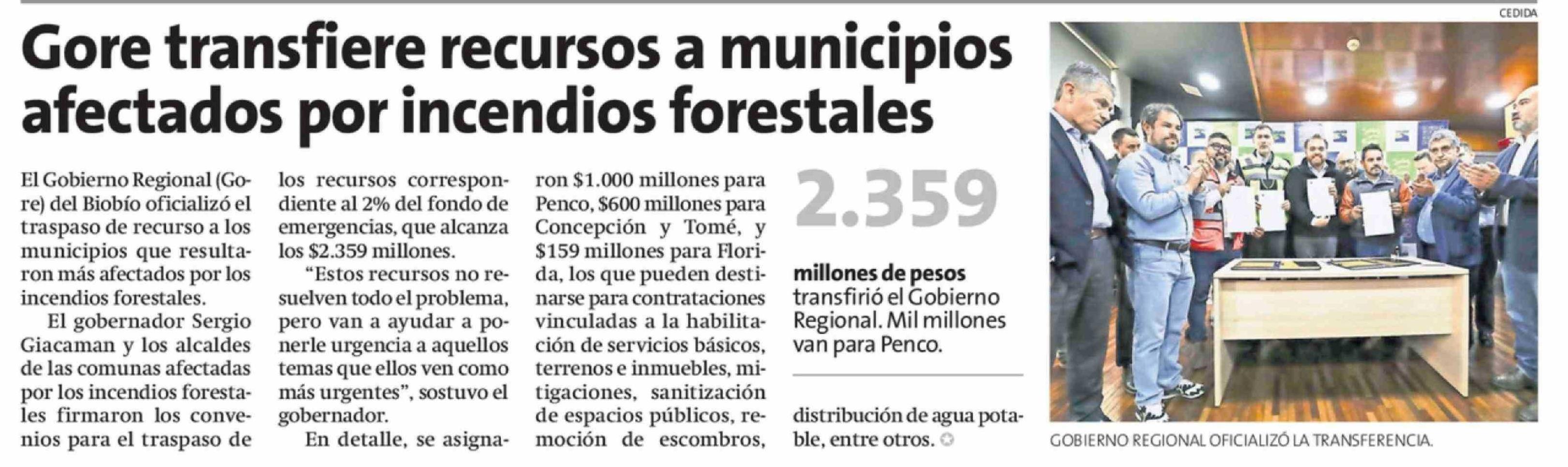 Gore transfiere recursos a municipios afectados por incendios forestales