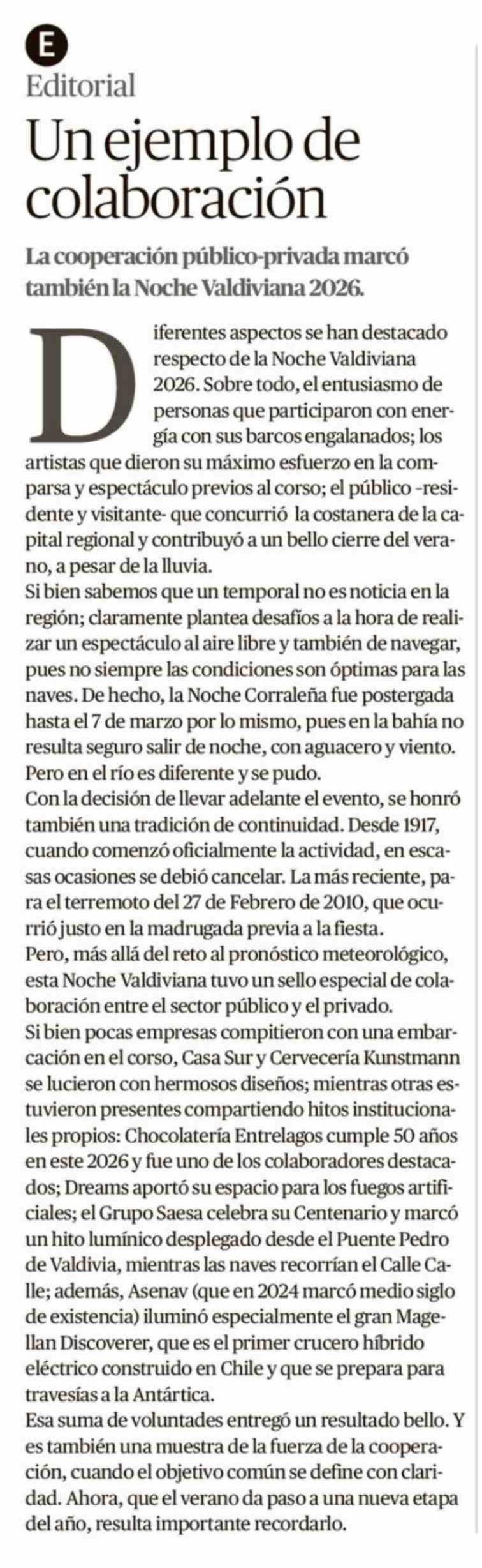 Editorial: Un ejemplo de colaboración