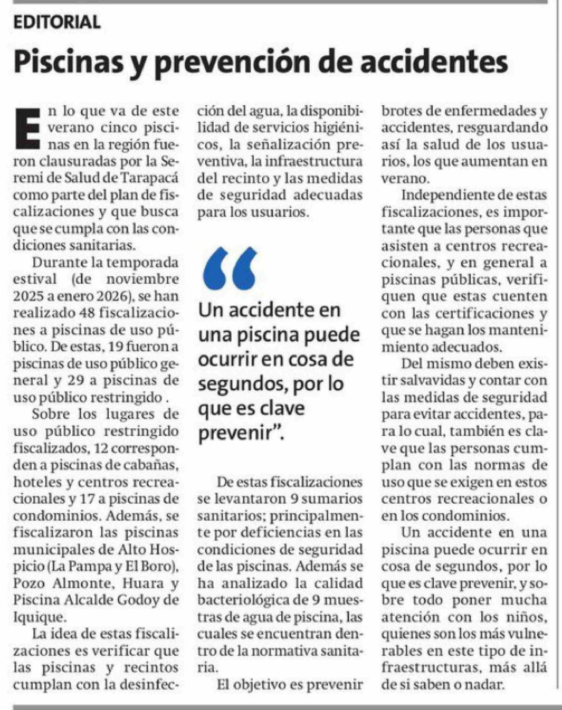 Editorial: Piscinas y prevención de accidentes